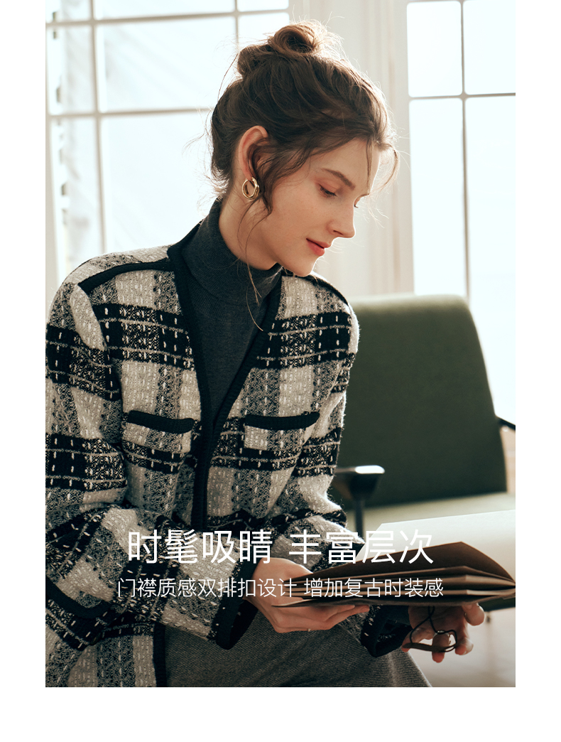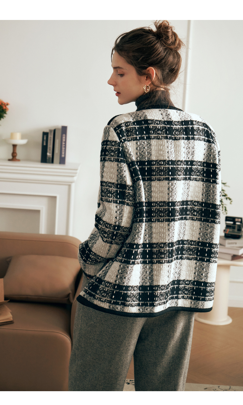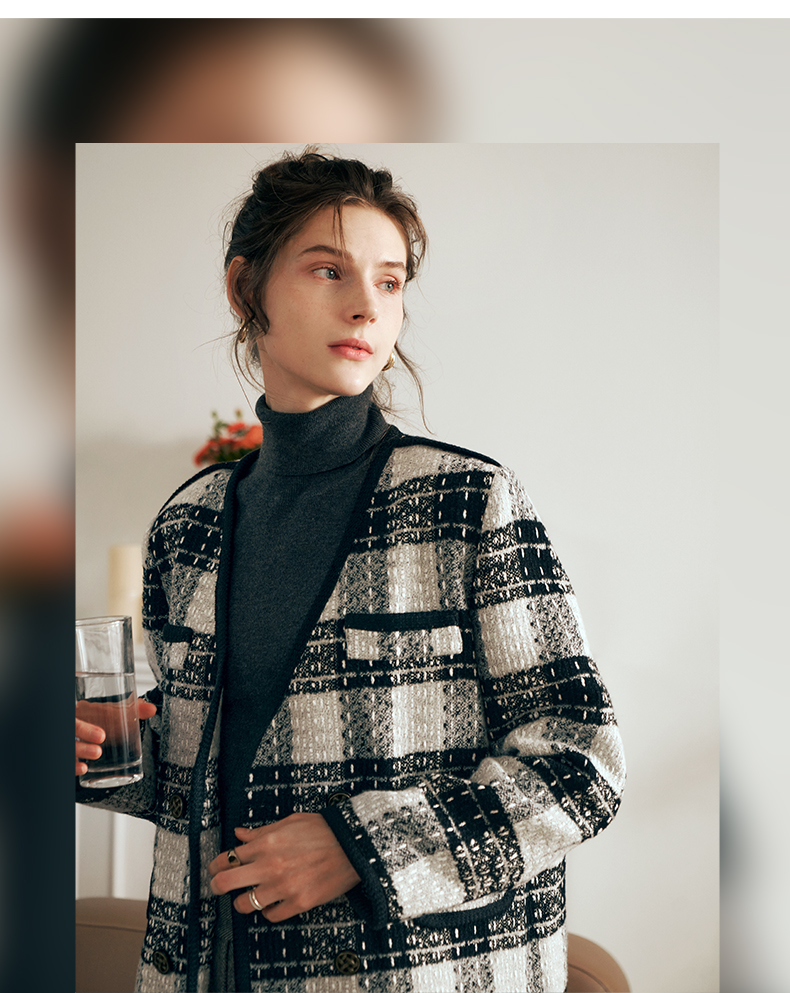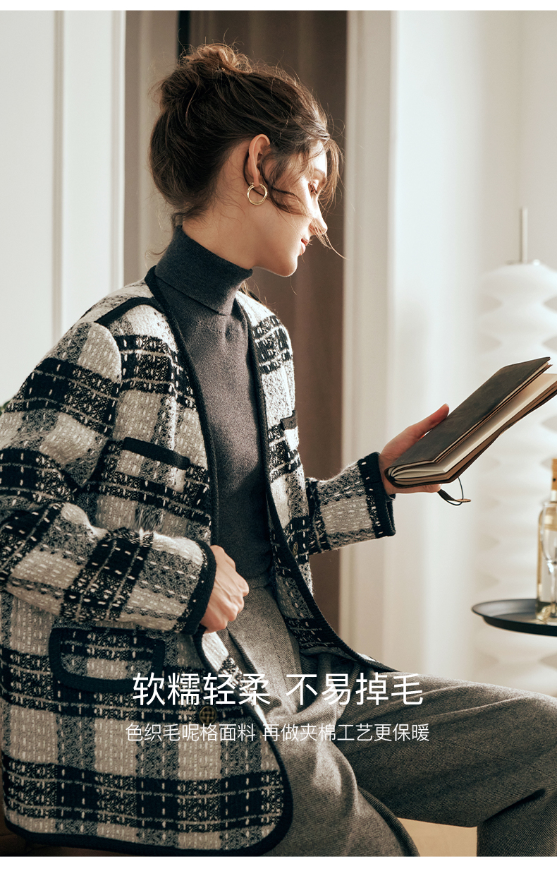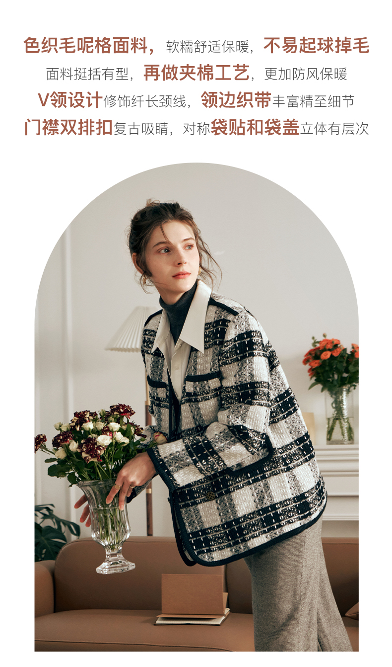 OLrain欧芮儿黑白色小香风短外套女春2025新款气质慵懒毛呢外套