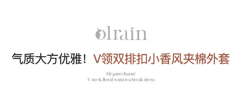 - “精致”是欧芮儿olrain品牌文化的核心,欧芮儿认为,精致的女人,不但要外在动人,更要内在迷人,内外兼修,有魅力、有气质、有内涵,自信而不自傲,优雅而不矫揉,自有万种风情而不轻浮,更不故作矜持。