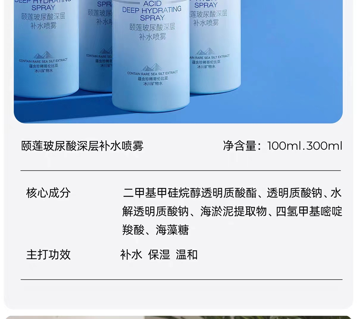 【春日秒杀】2.0升级版颐莲玻尿酸深层补水喷雾 300ml*2瓶