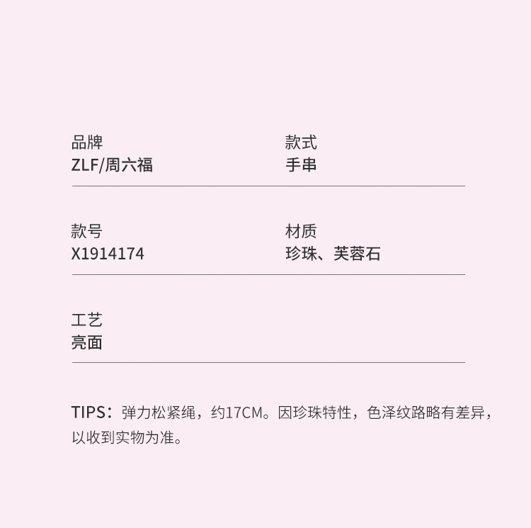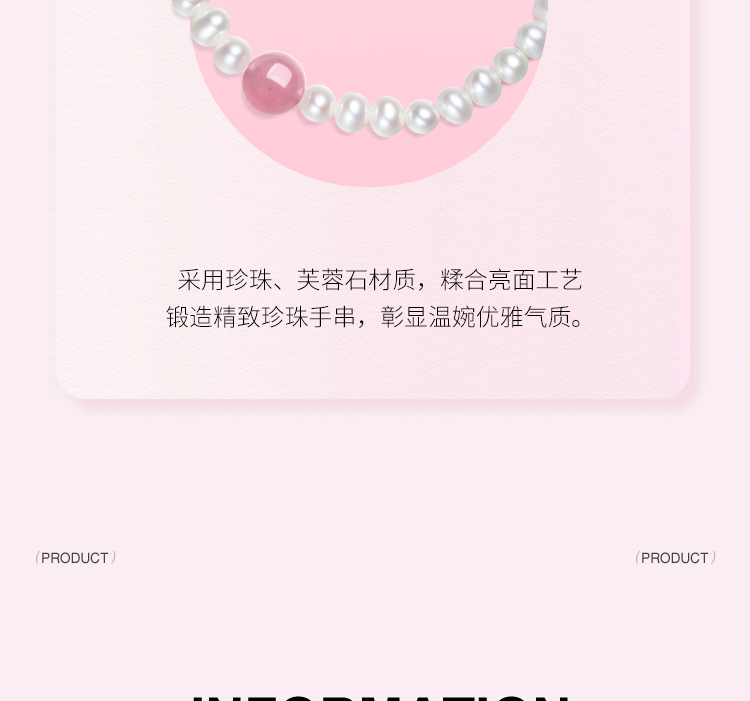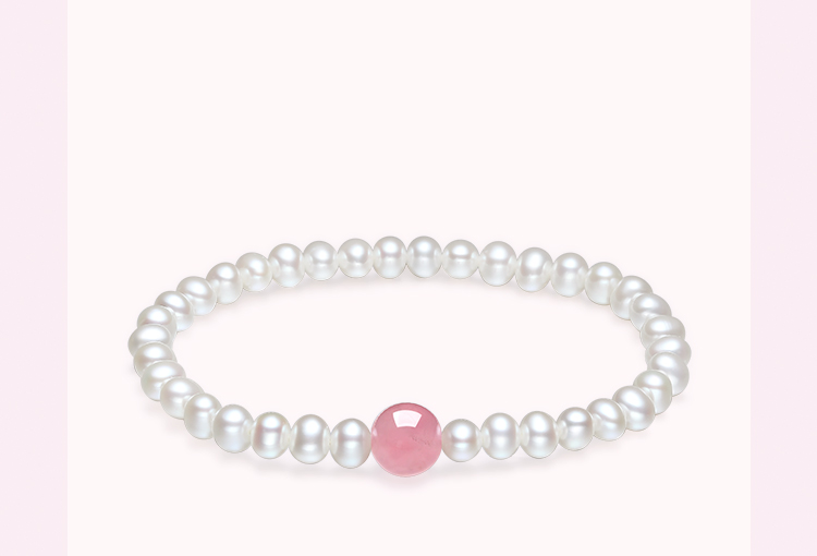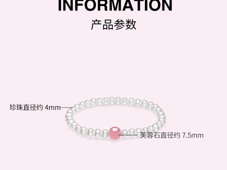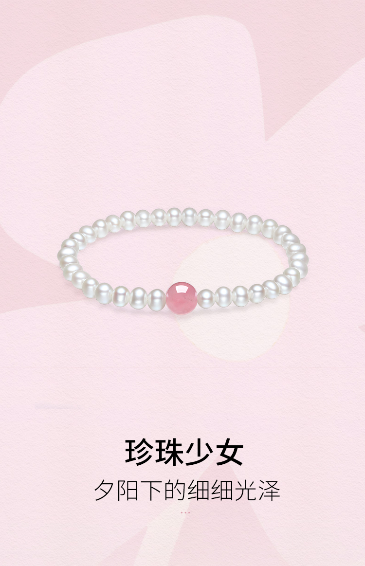 周六福淡水珍珠手串女粉色芙蓉石手饰优雅甜美送女友生日礼物