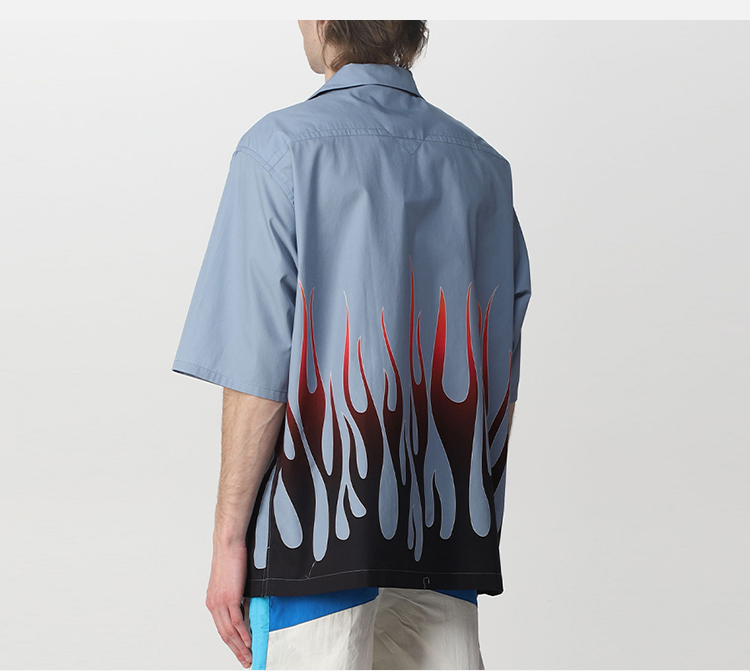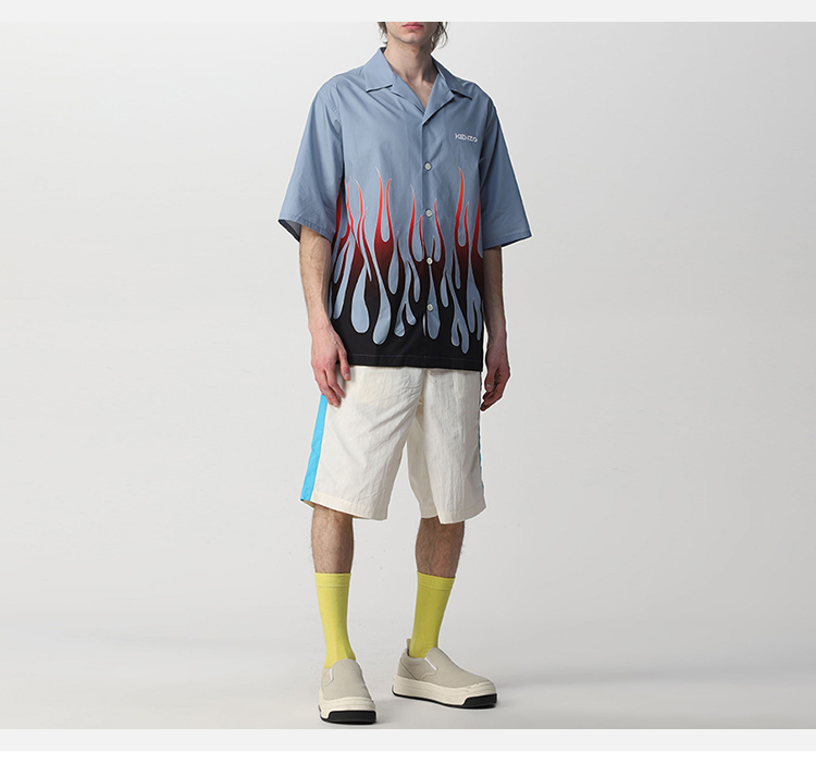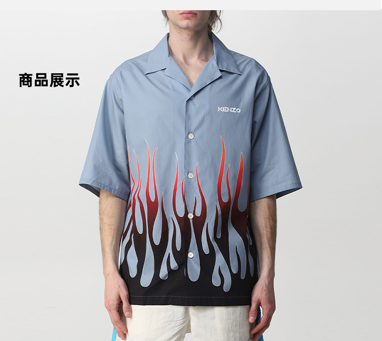 KENZO 高田贤三 男士棉质字母 LOGO 火焰印花短袖衬衫 蓝色 FC55 CH140 9S6 61