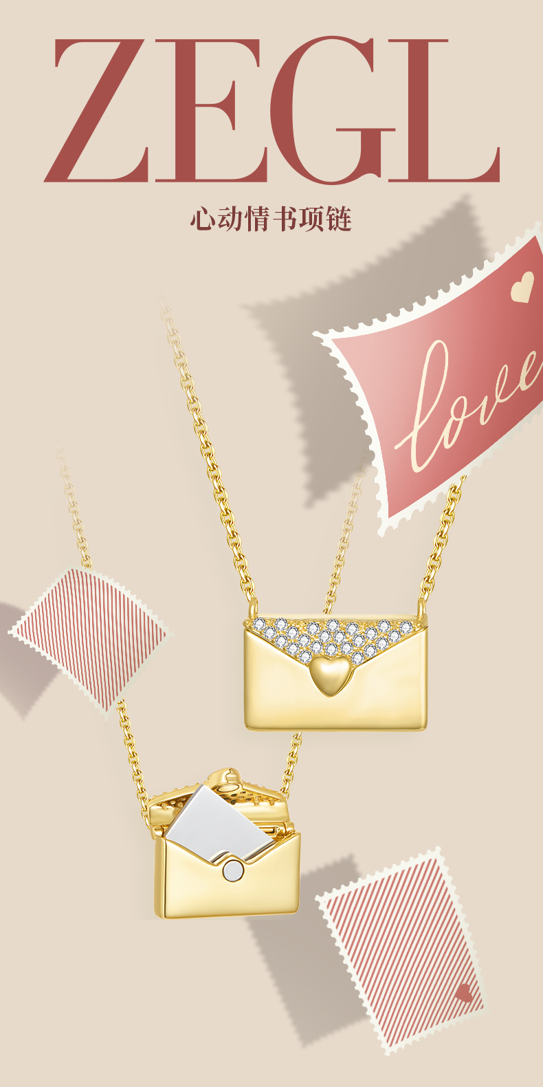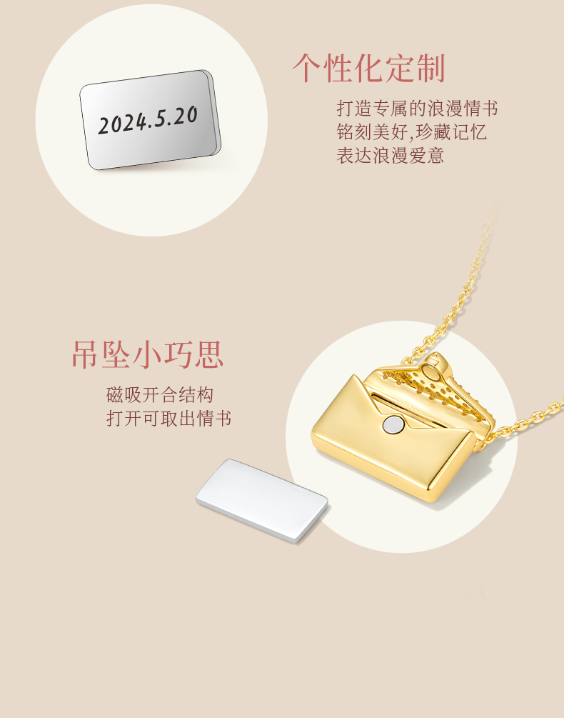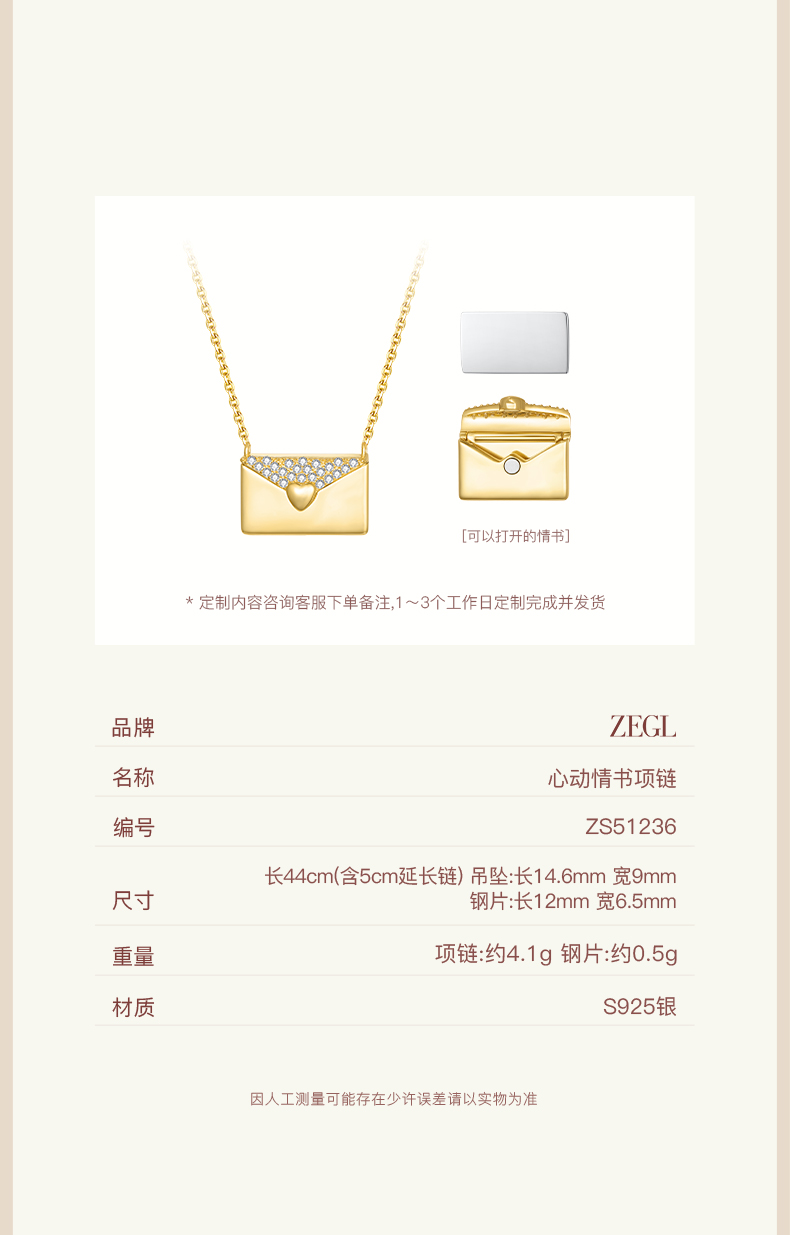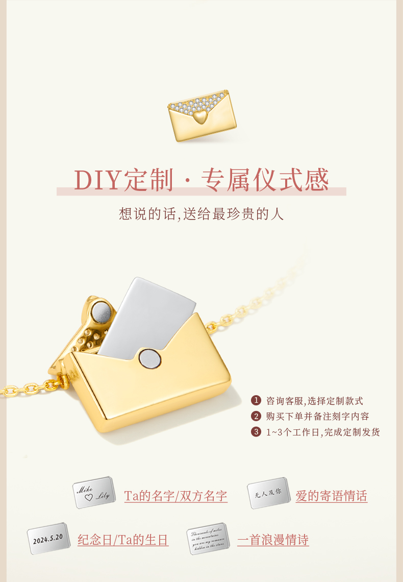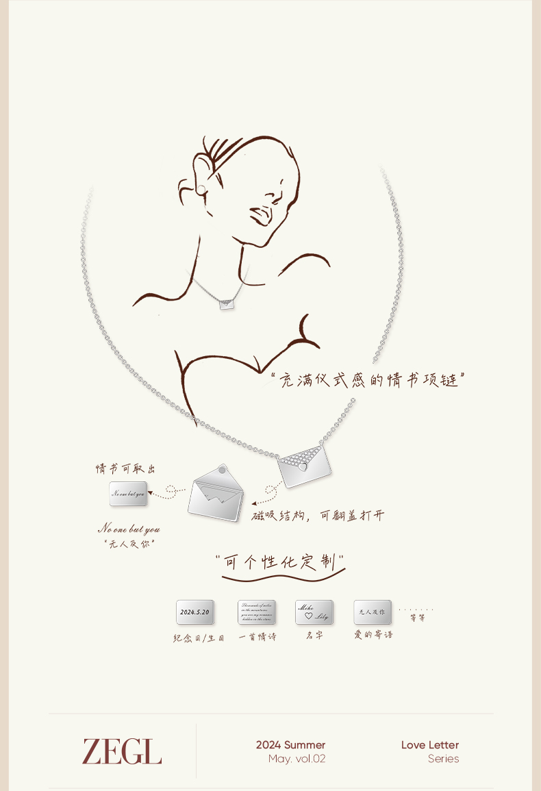 ZEGL设计师925银小情书系列情侣信封项链女2024新款高级感锁骨链