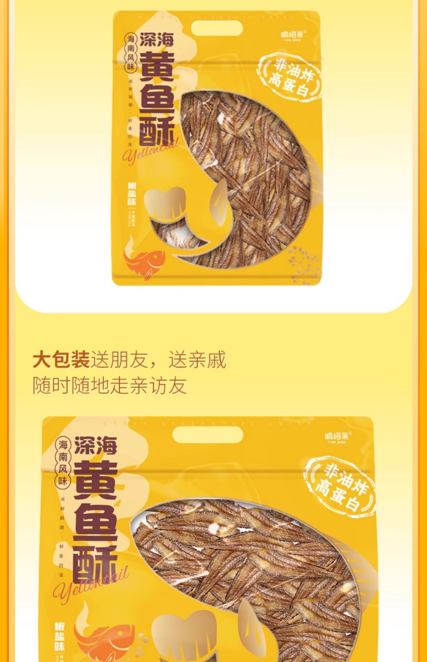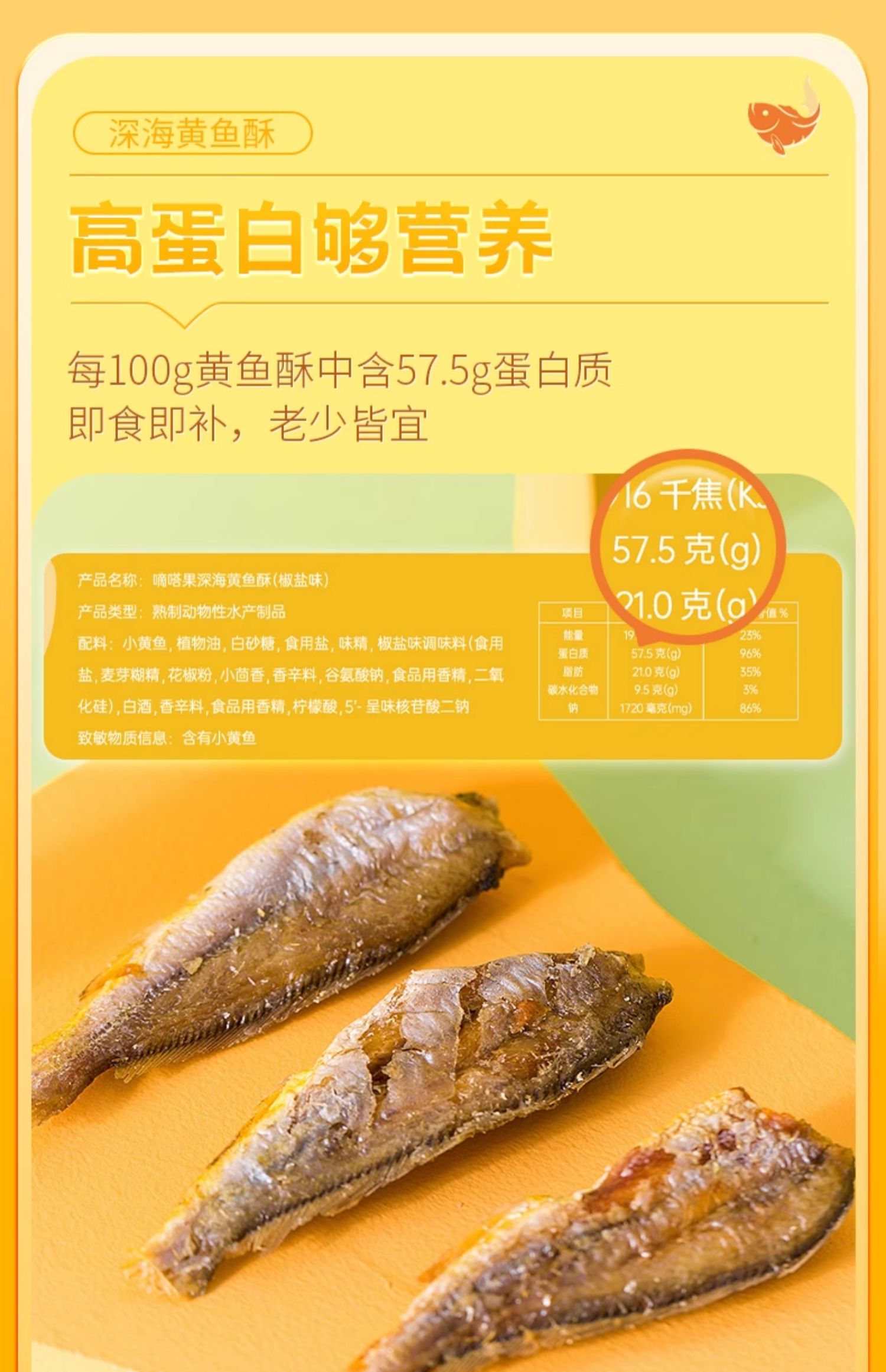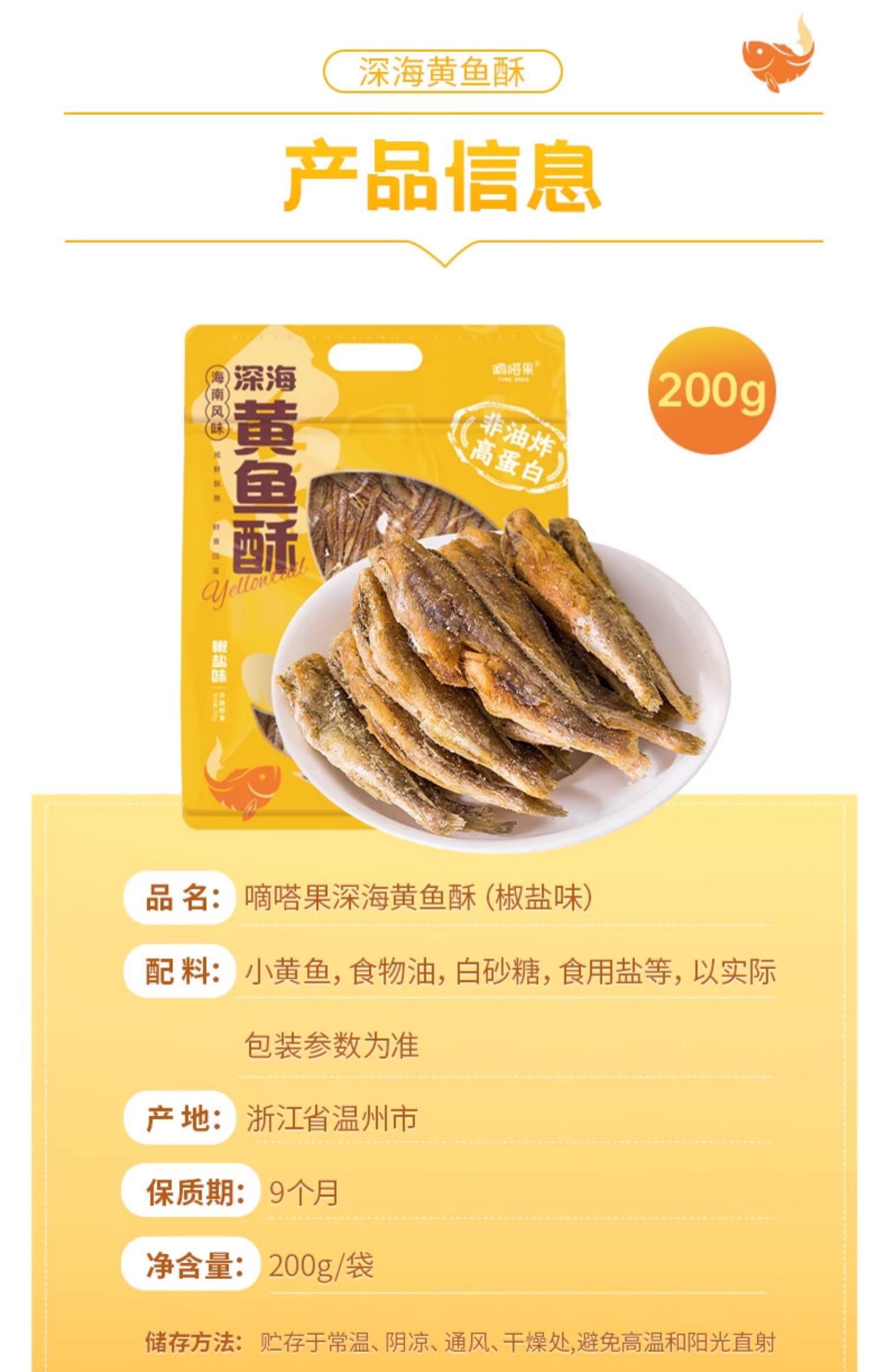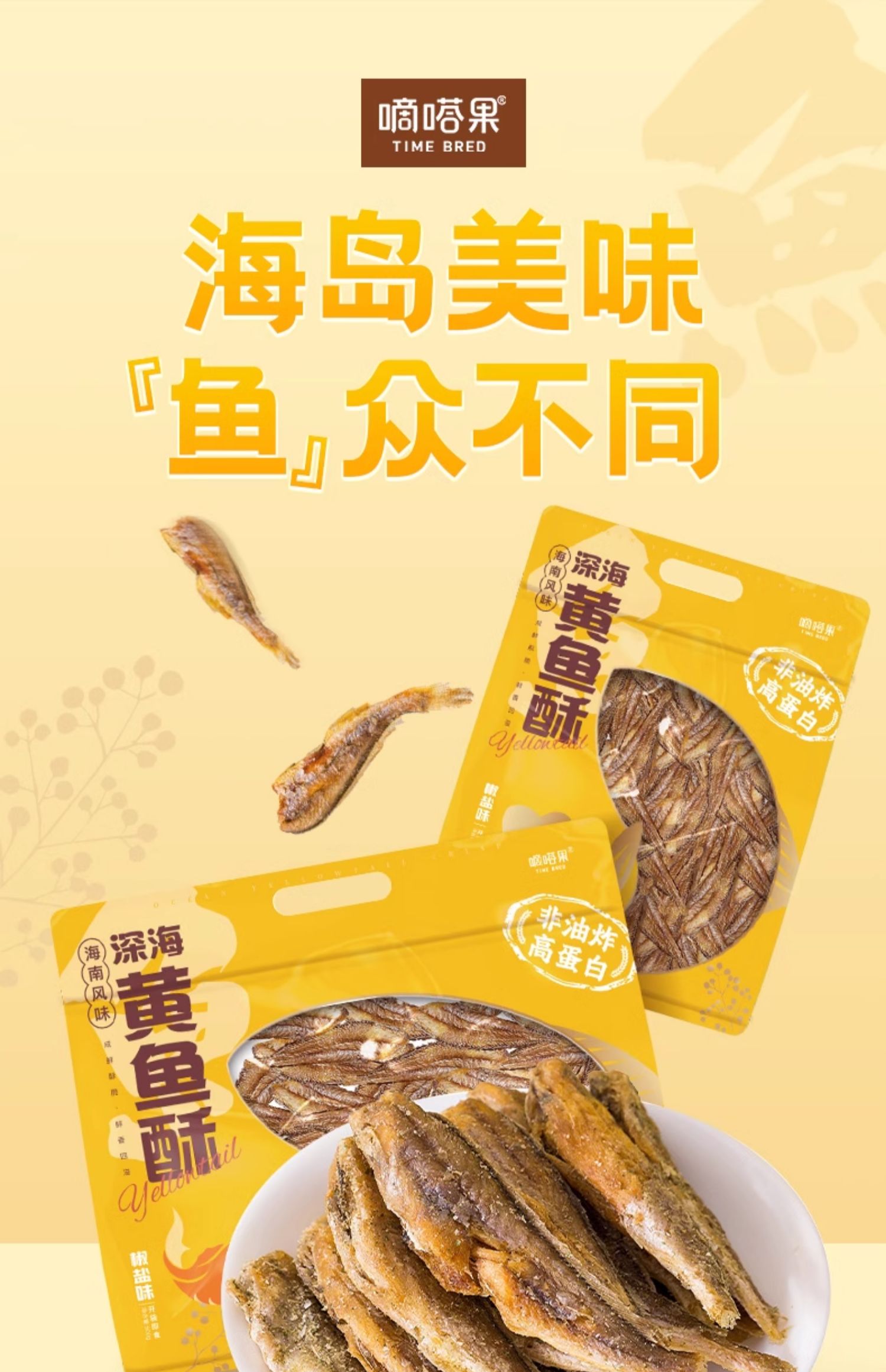 嘀嗒果深海黄鱼酥椒盐味小黄鱼干200g即食零食品香酥脆小鱼仔海味特产
