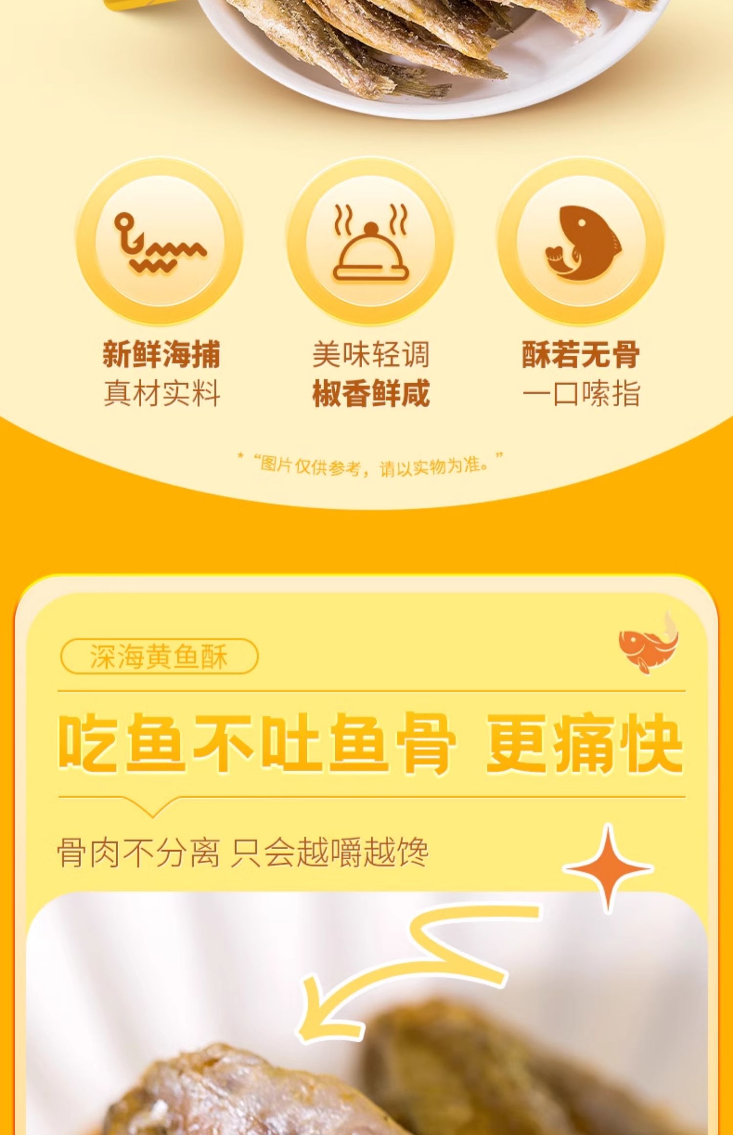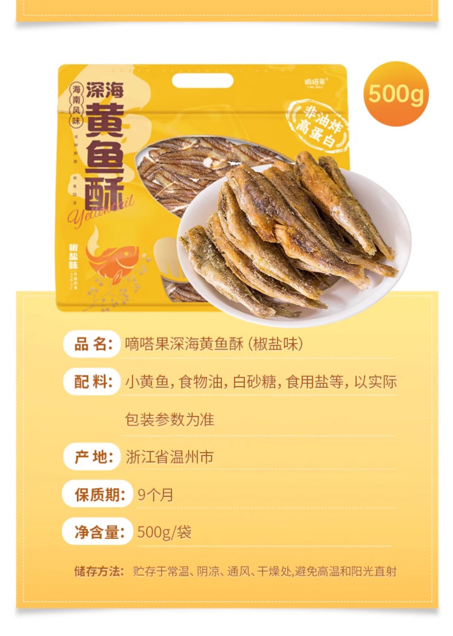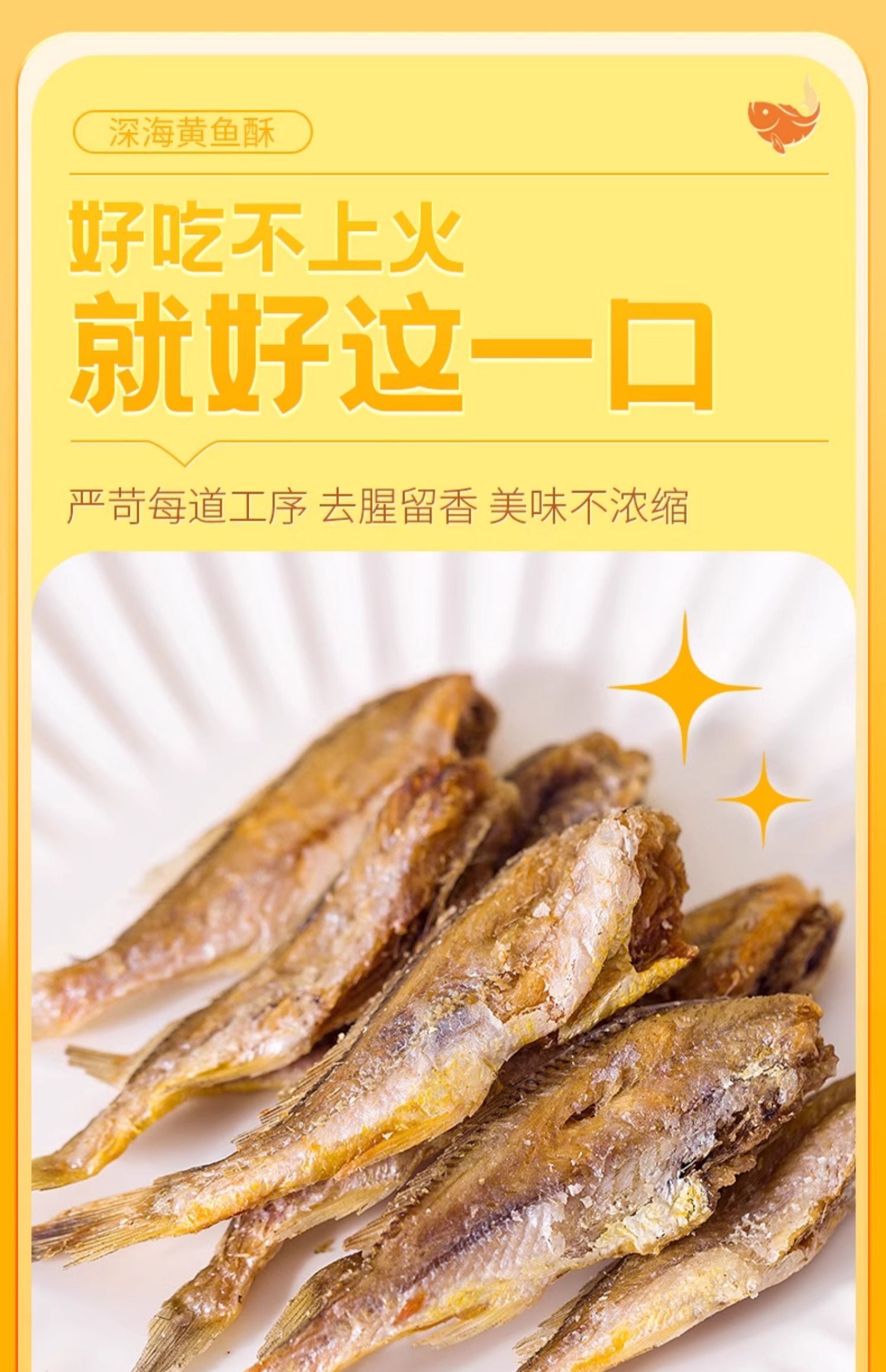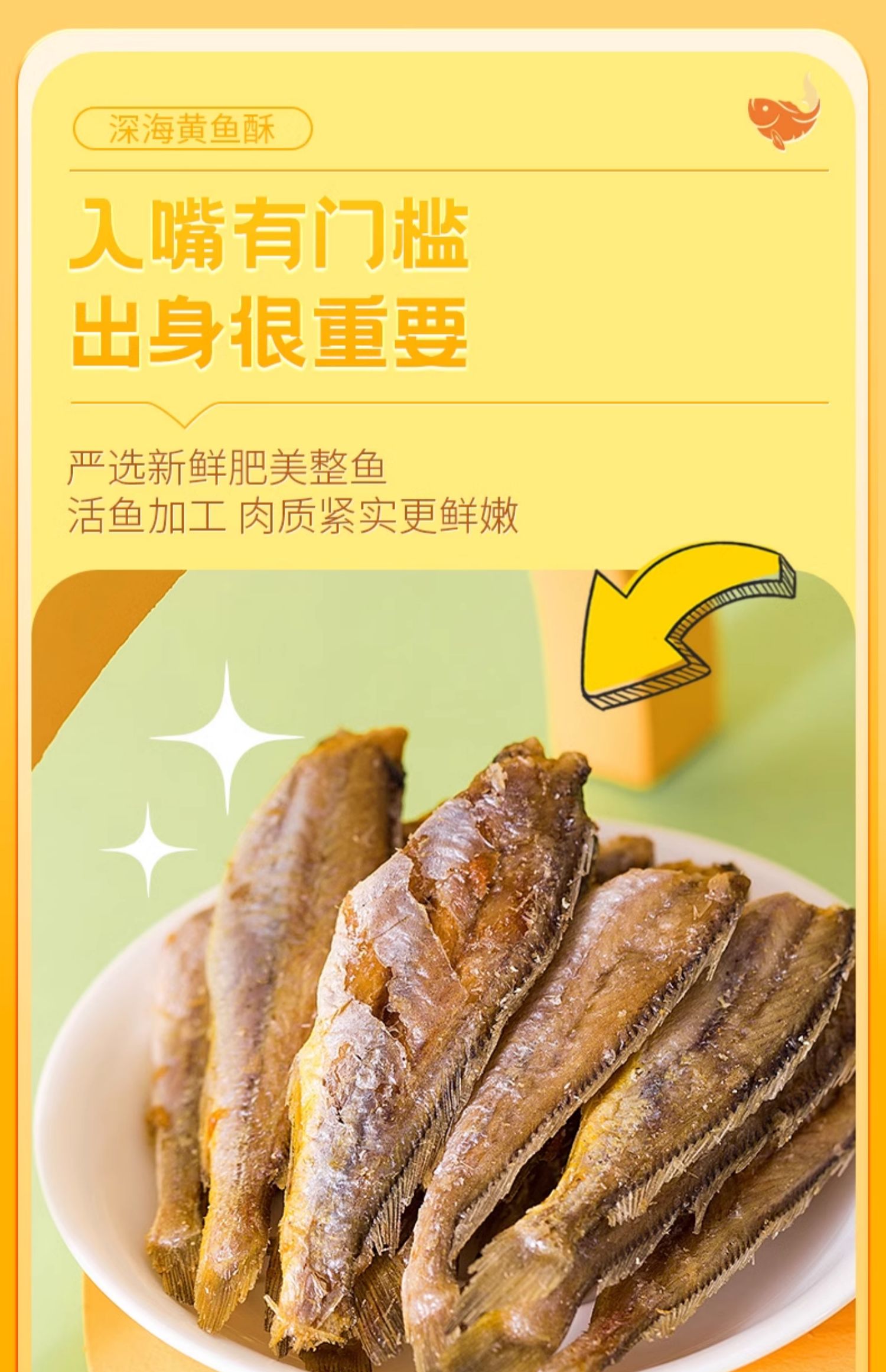 嘀嗒果深海黄鱼酥椒盐味小黄鱼干200g即食零食品香酥脆小鱼仔海味特产