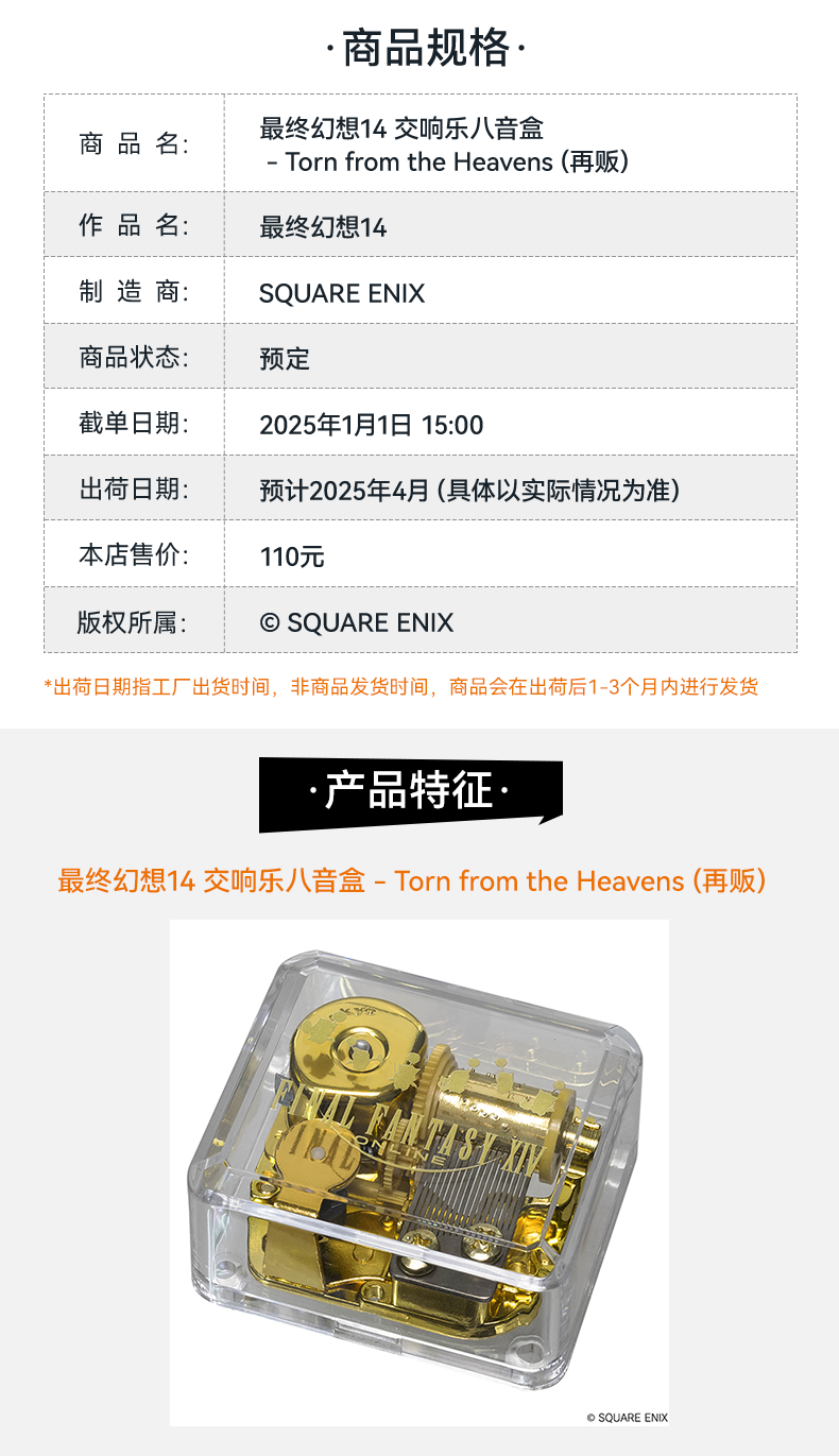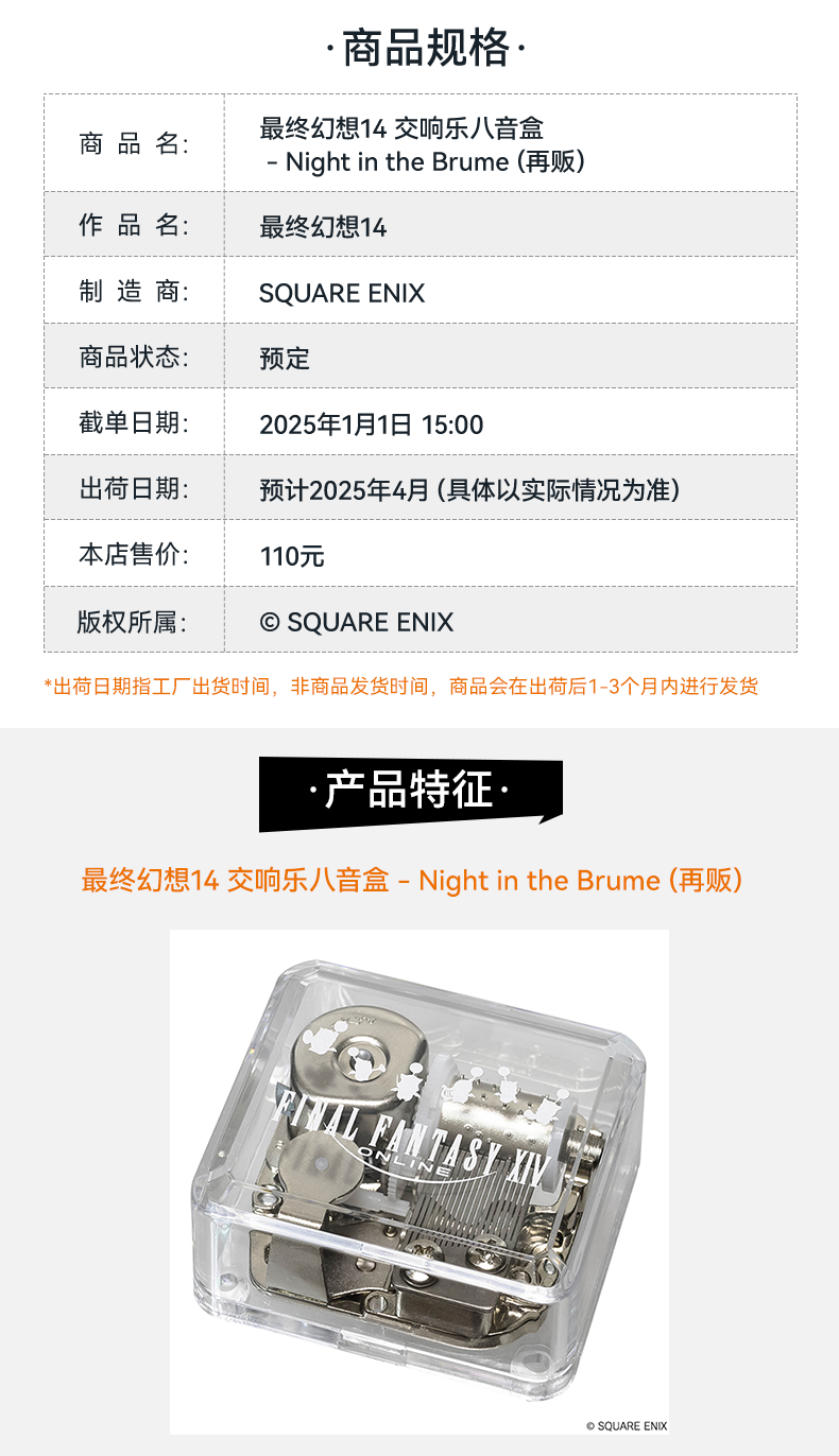 【GSC补款】最终幻想14 交响乐八音盒 Night in the Brume/Torn from the Heavens