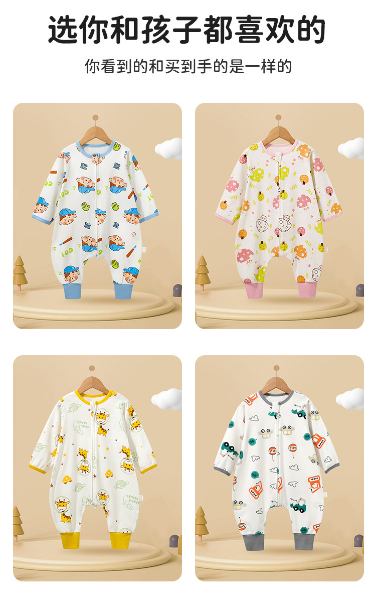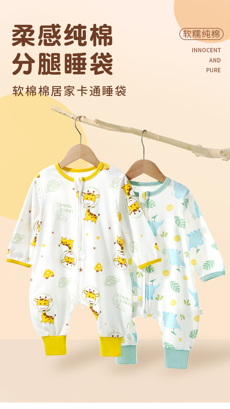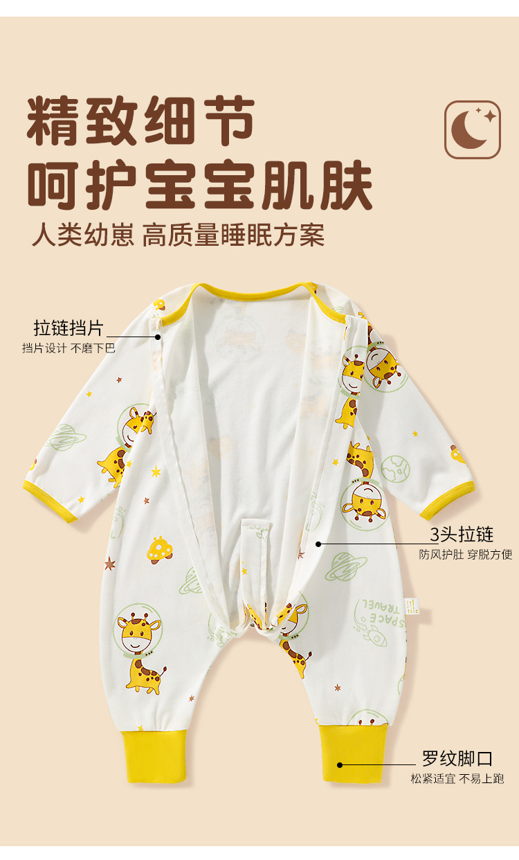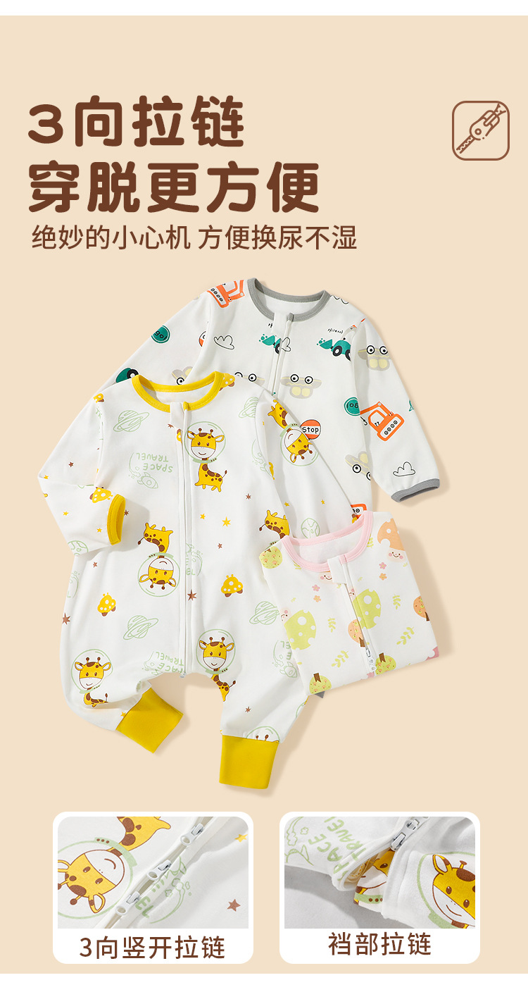 丸图儿童新款纯棉婴儿分腿睡袋双向拉链宝宝居家睡衣防踢被春秋款连体80-110