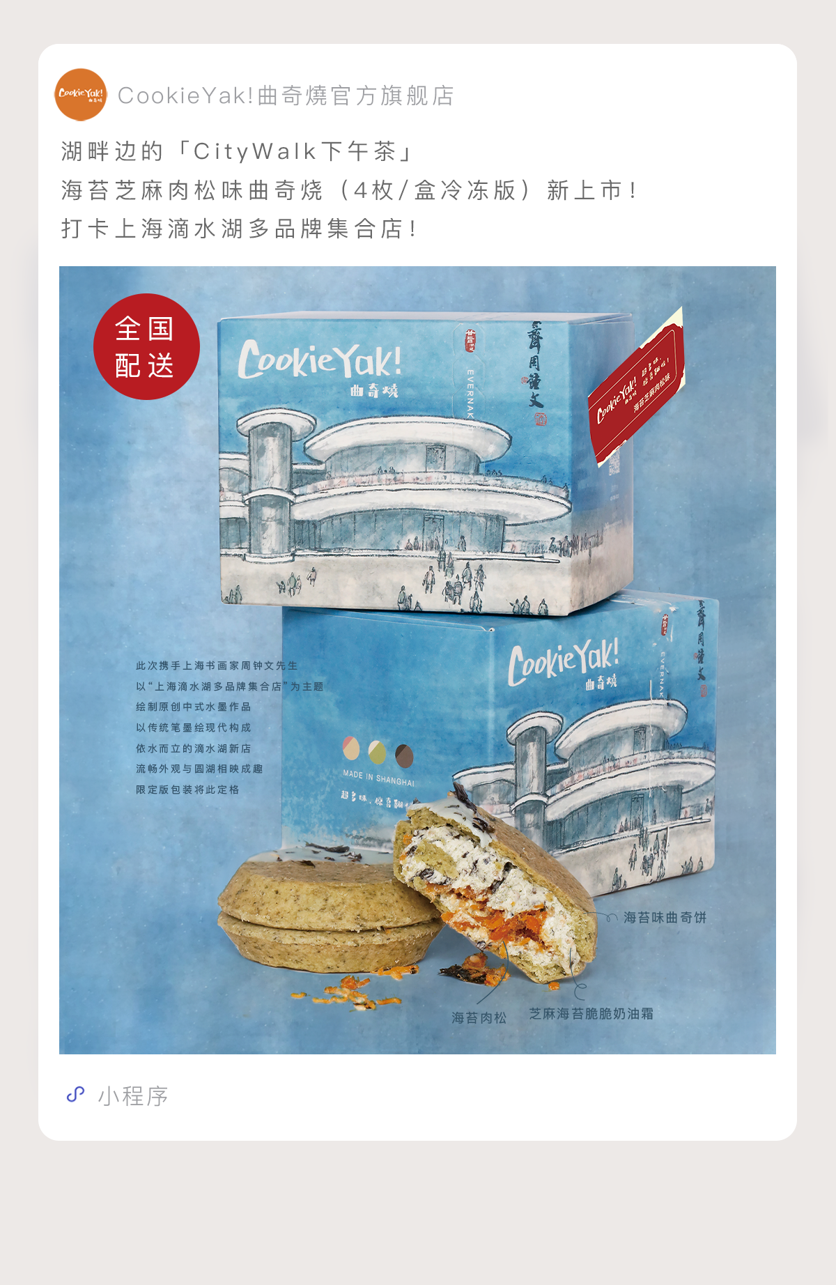 「CityWak下午茶」海苔芝麻肉松味|冷冻经典版曲奇烧 (4枚/盒)