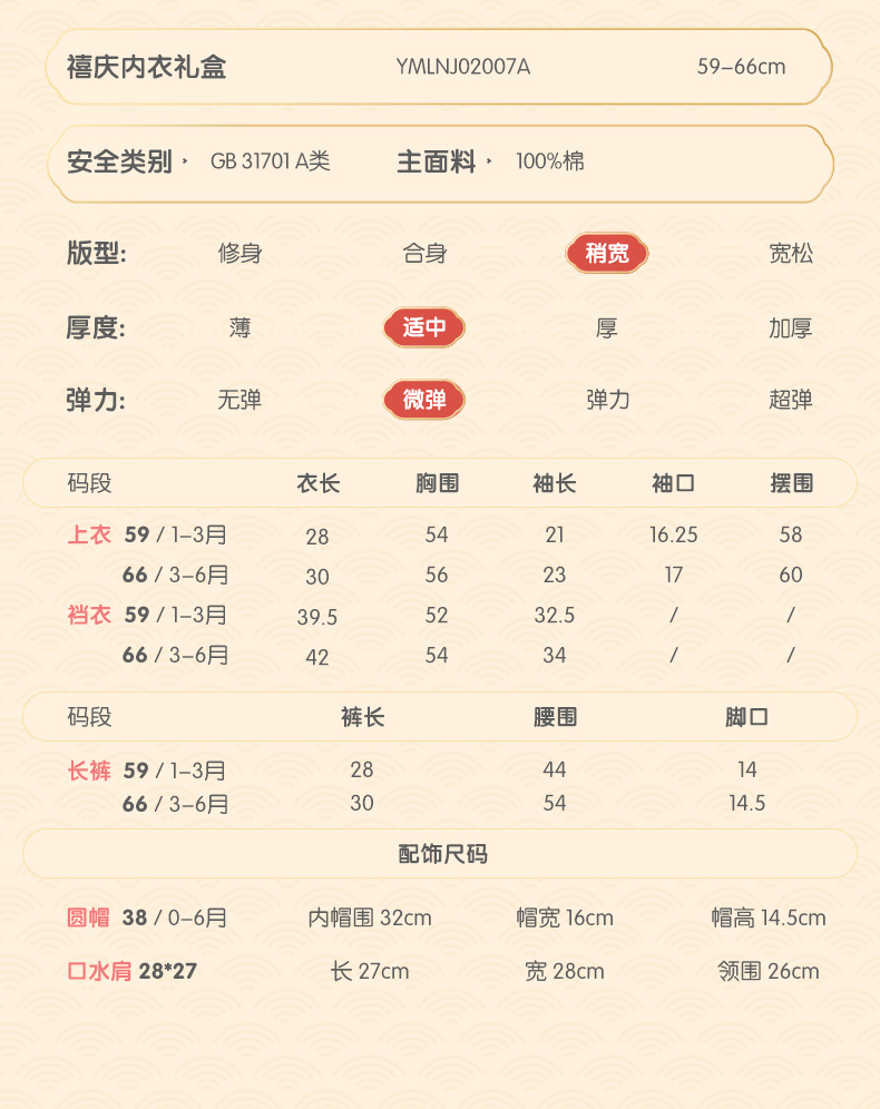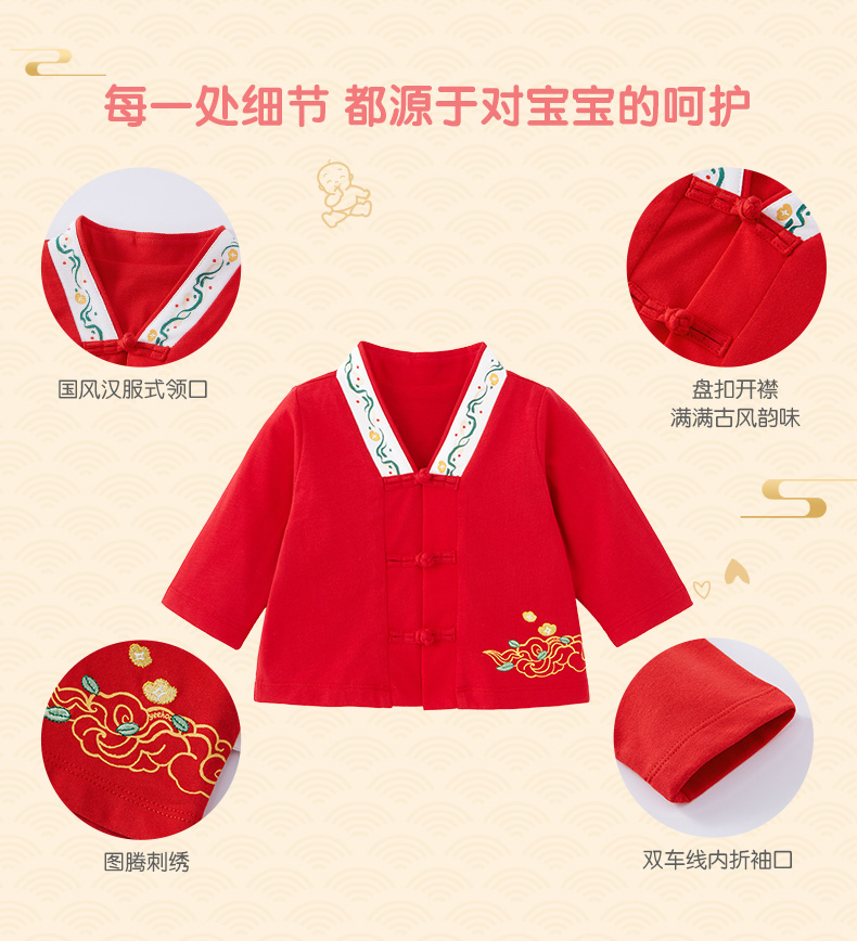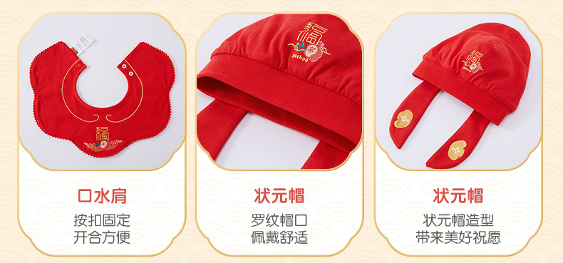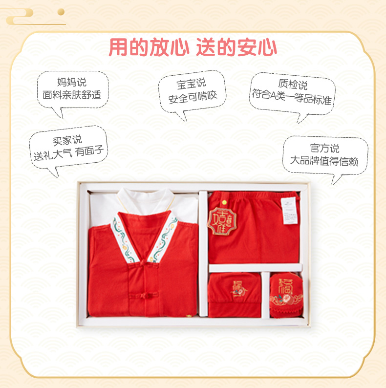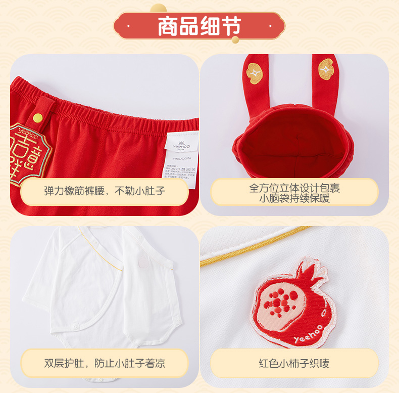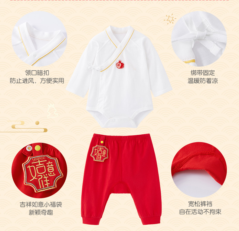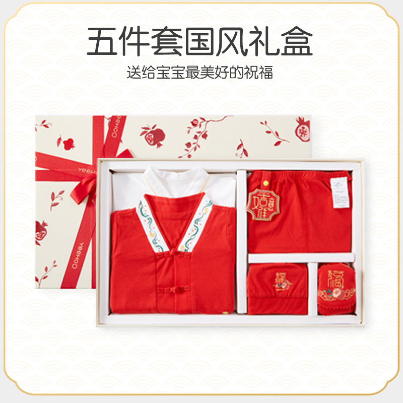 英氏婴儿内衣礼盒宝宝满月百天送礼5件中国风套装YMLNJ02007A