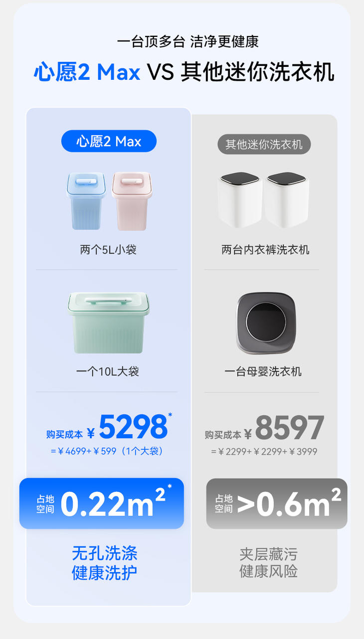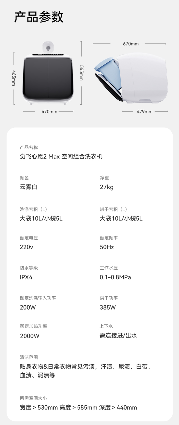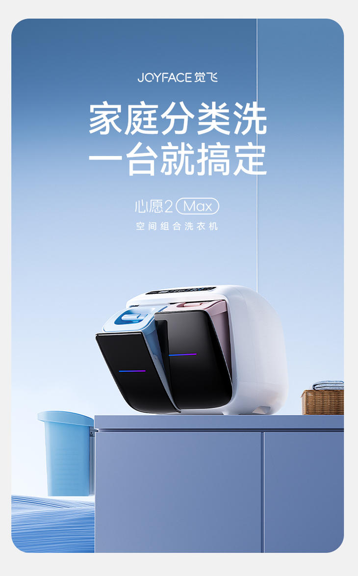 觉飞心愿2Max空间组合洗衣机家用全自动分区,洗烘一体大容量婴儿