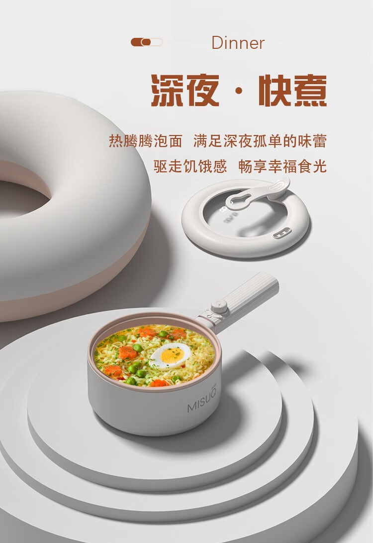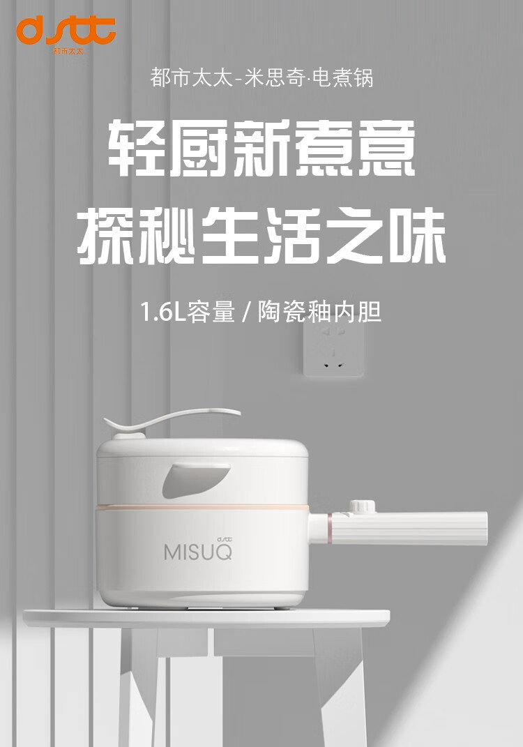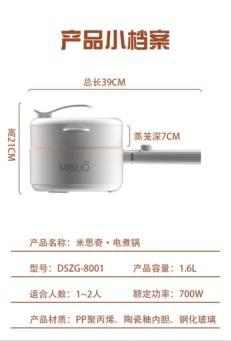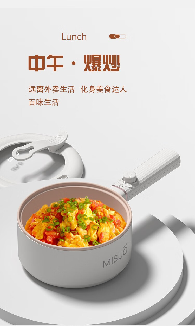 都市太太米思奇电煮锅宿舍学生多功能家用电炒一体电热火锅小型煮面小电锅_白色