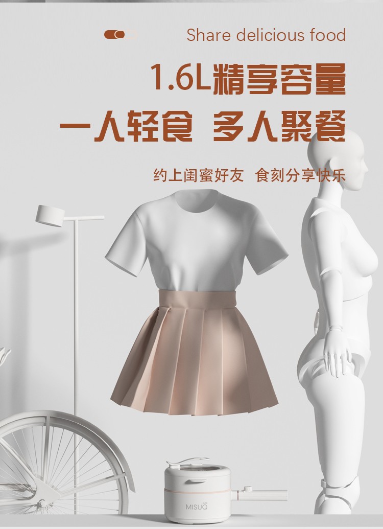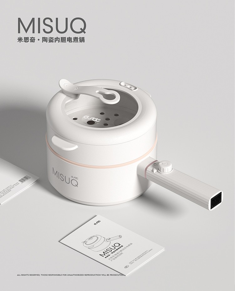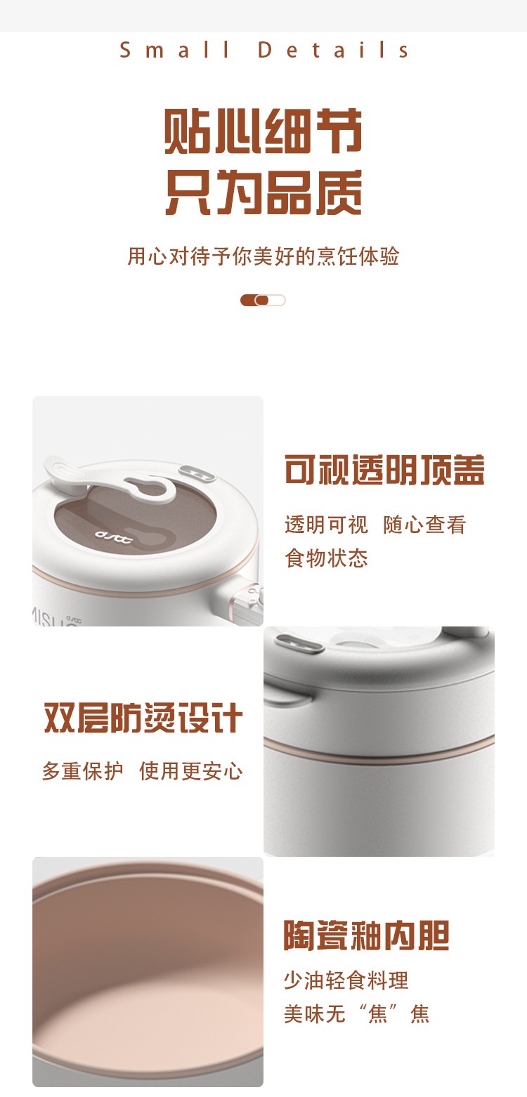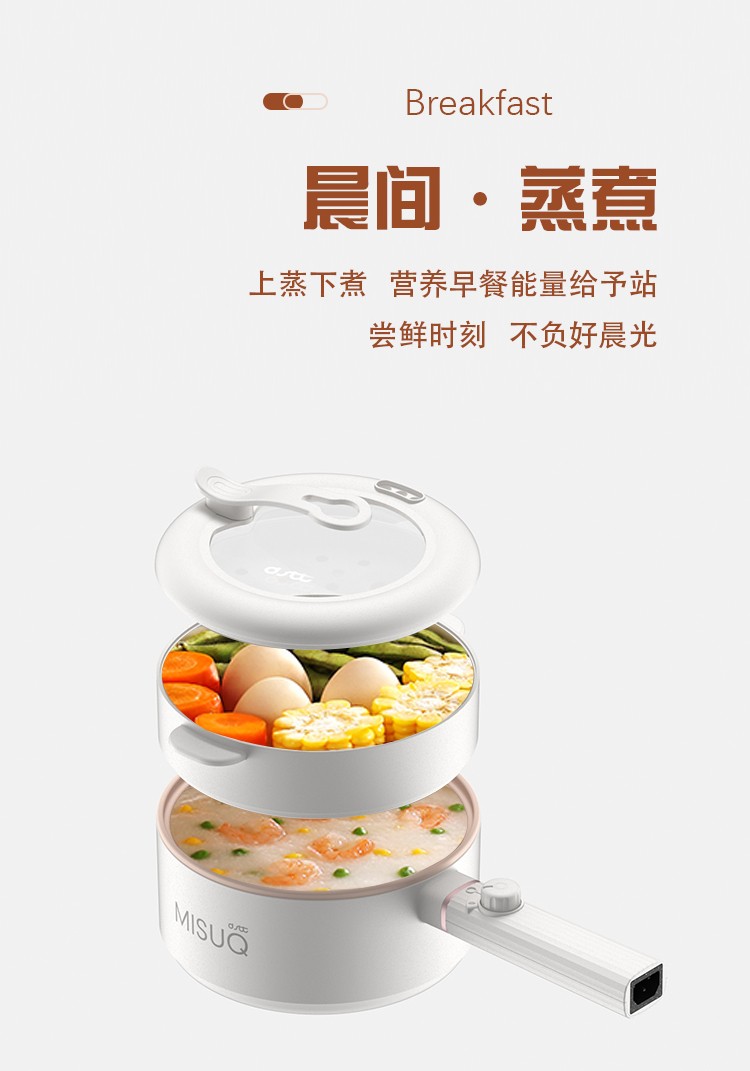 都市太太米思奇电煮锅宿舍学生多功能家用电炒一体电热火锅小型煮面小电锅_白色