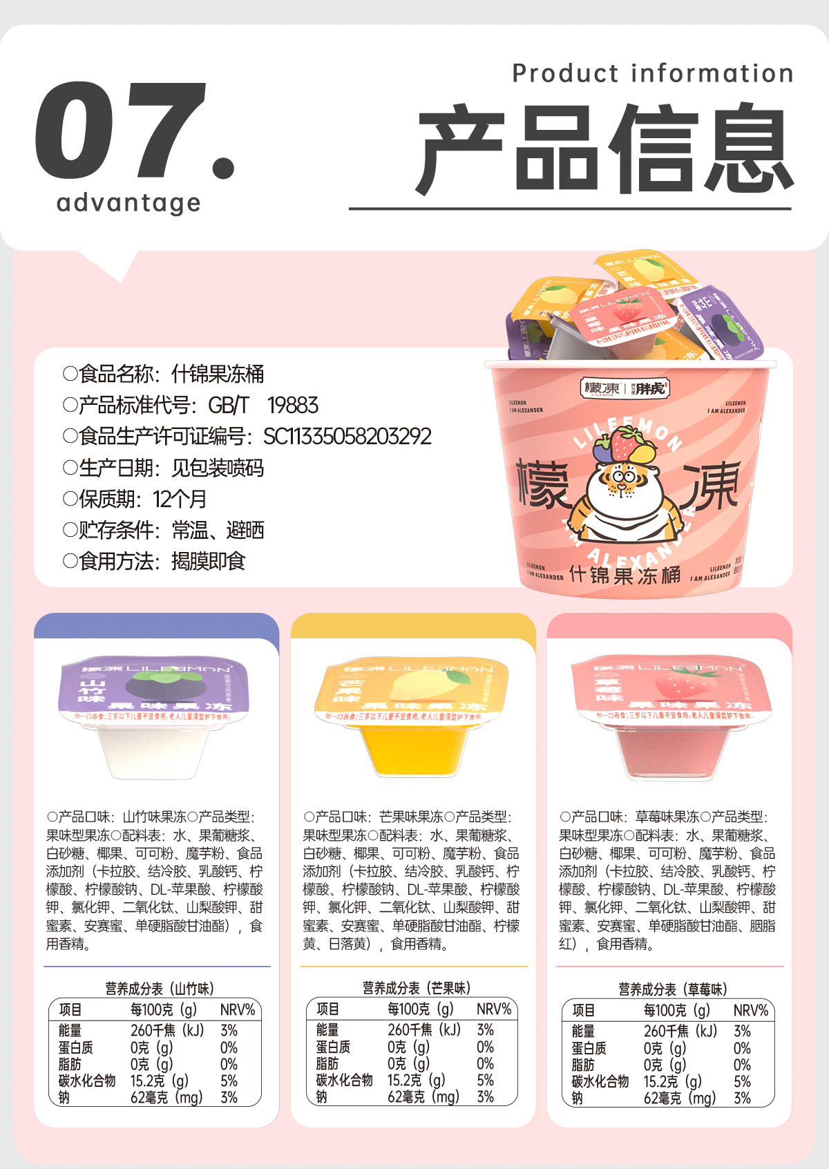 檬冻 胖虎联名什锦果冻小桃桶 650g*2