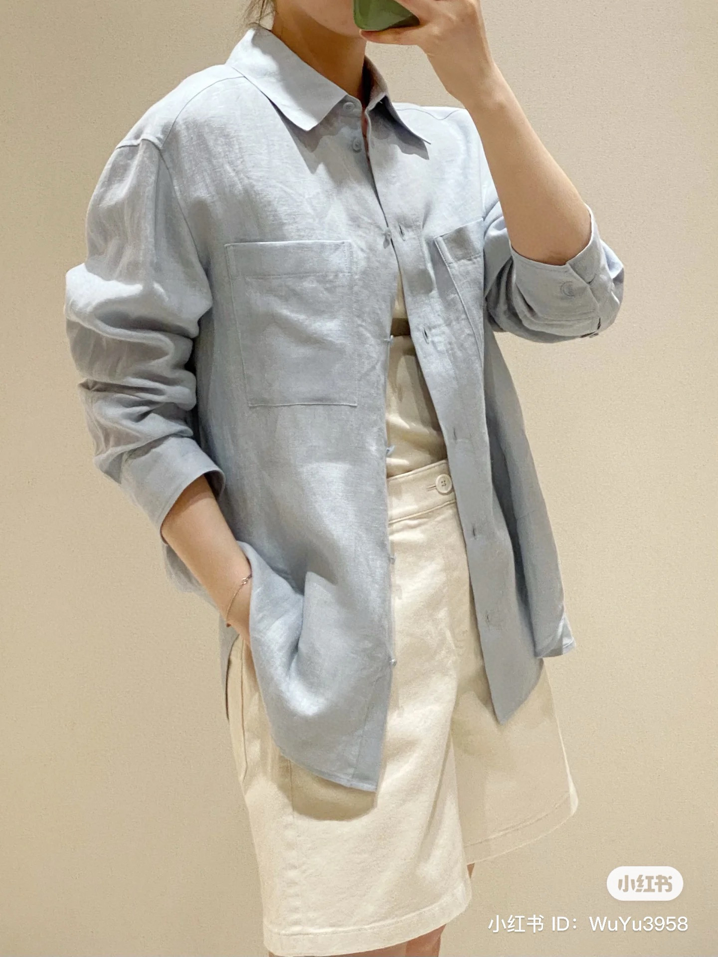 63-1 排他性独家圆正 小禾比利时亚麻平纹布衬衫 活色生香 热门新色