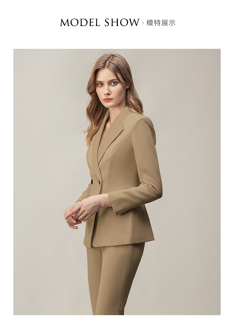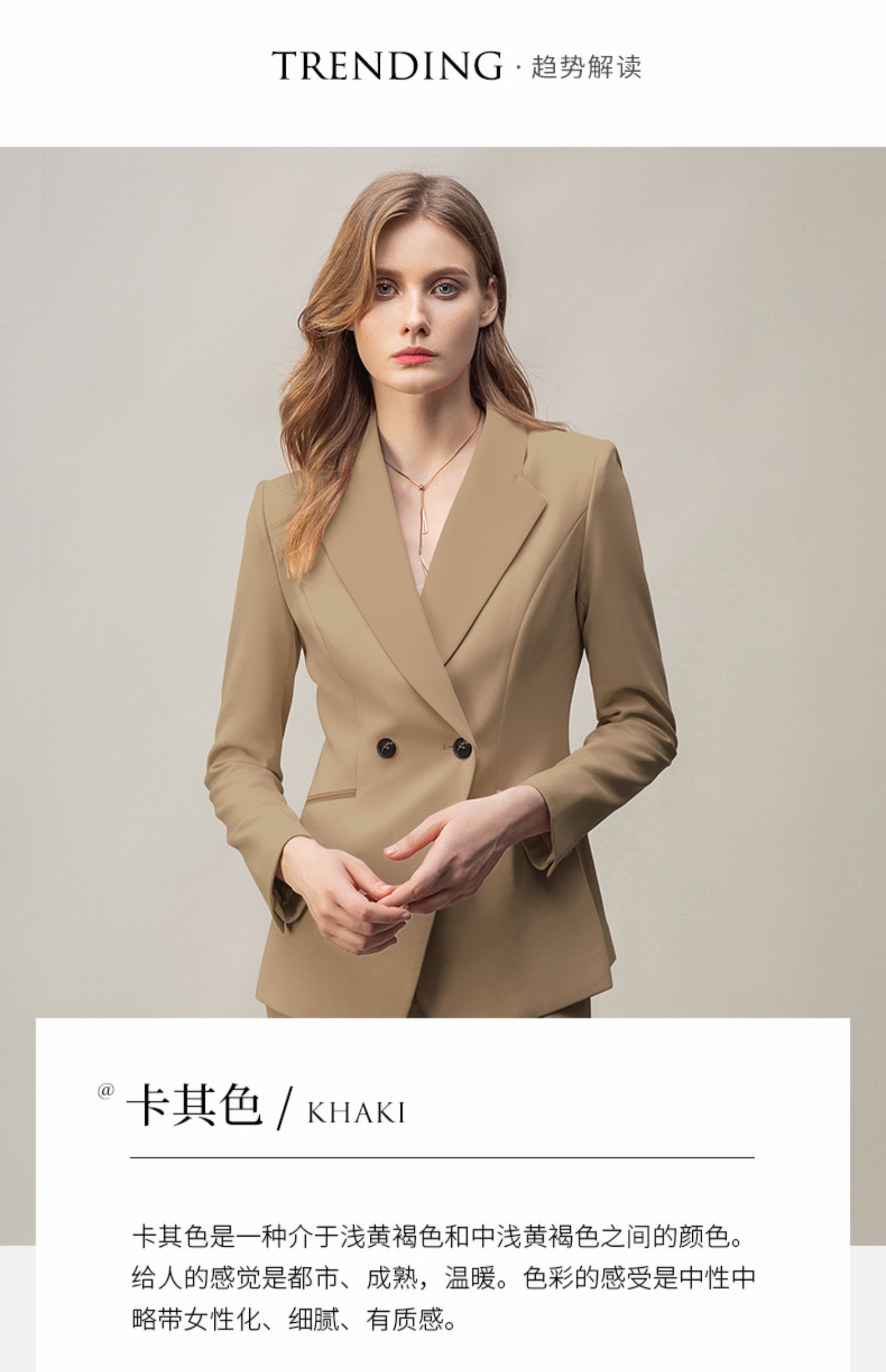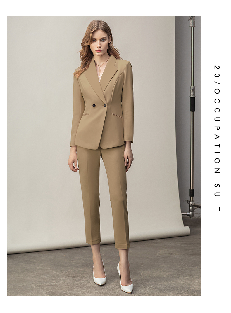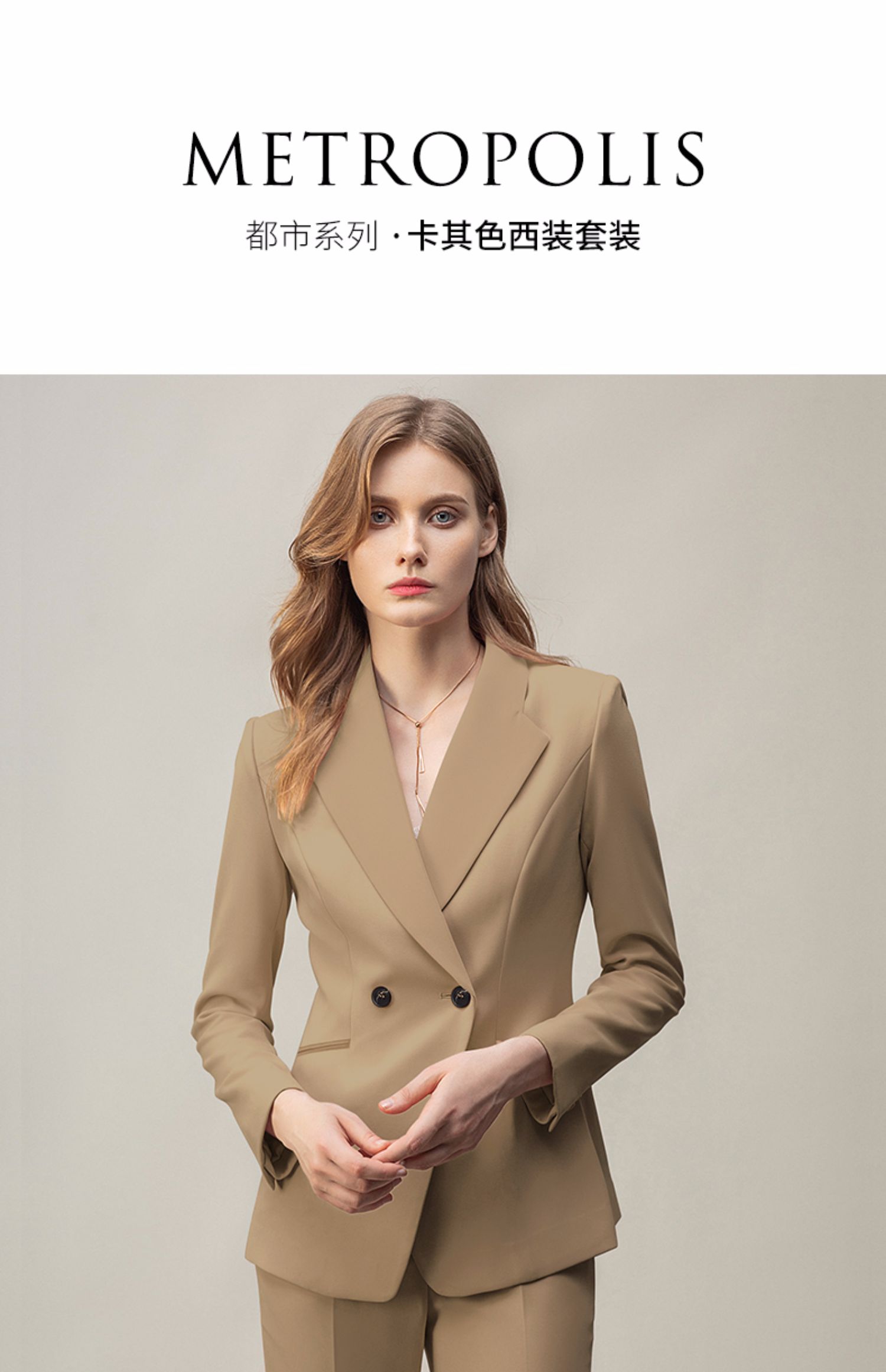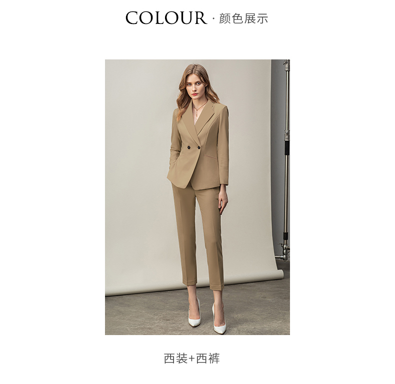IWY/卡其色高端职业套装女时尚气质休闲正装通勤工作西服两件套 CP11120+CP11107
