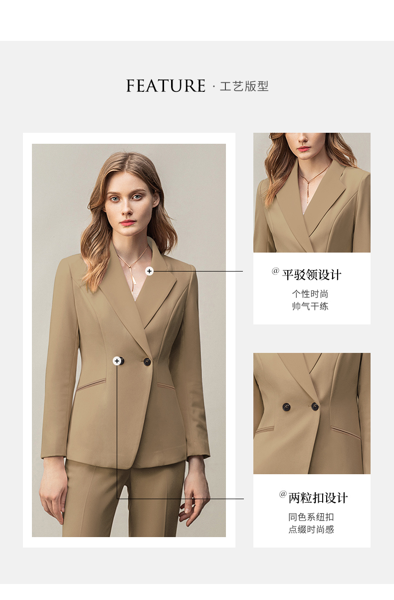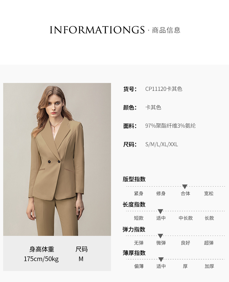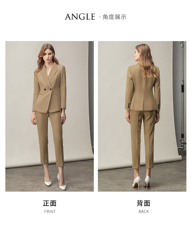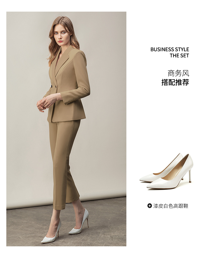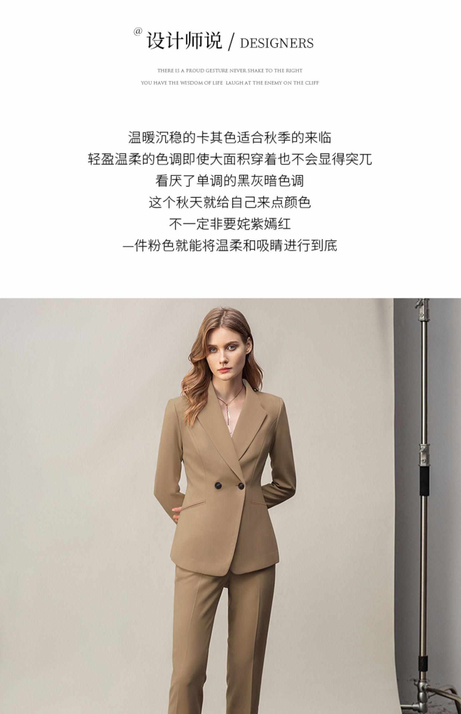 IWY/卡其色高端职业套装女时尚气质休闲正装通勤工作西服两件套 CP11120+CP11107