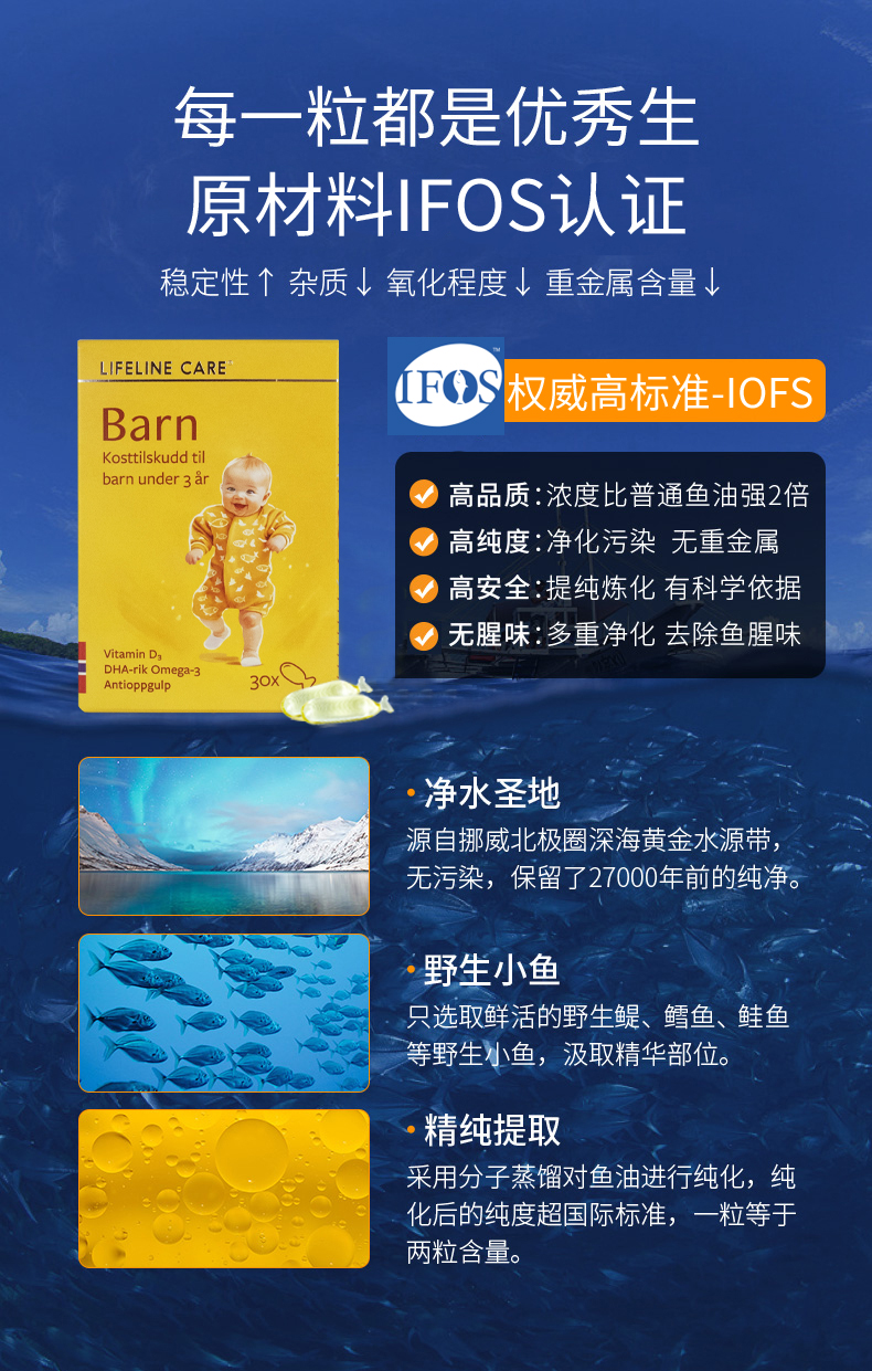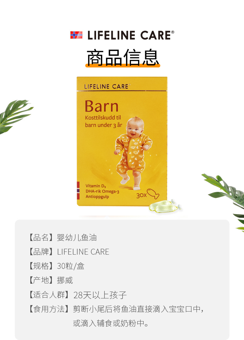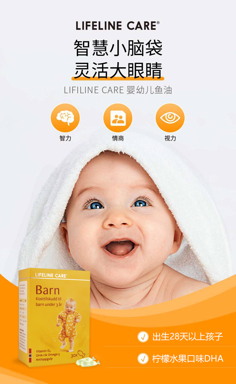 【推荐】挪威Lifeline Care婴幼儿补脑深海鱼油DHA宝宝眼脑发育0-3岁
