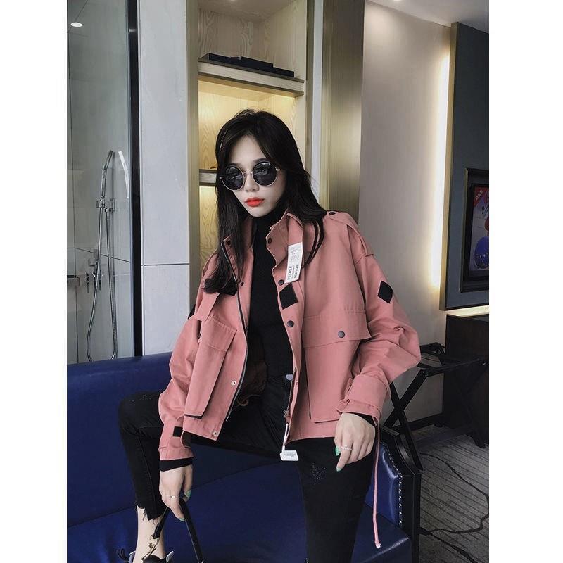 新款百搭 春秋韩版宽松显瘦立领工装夹克女ins潮