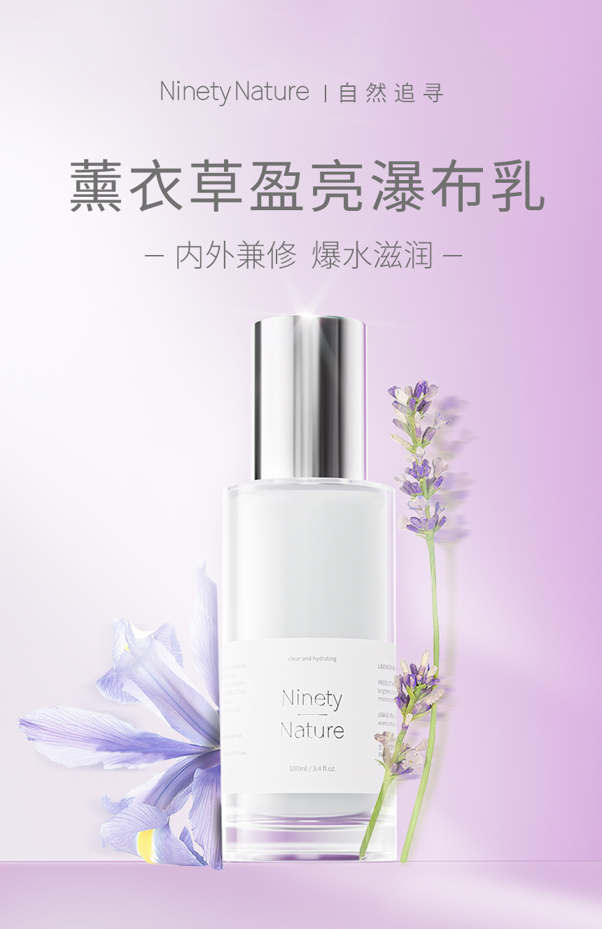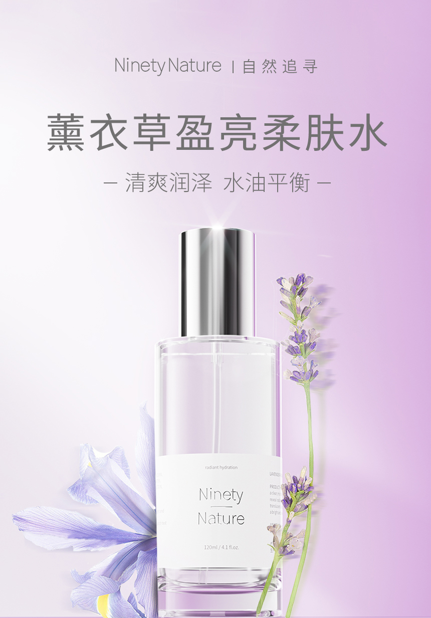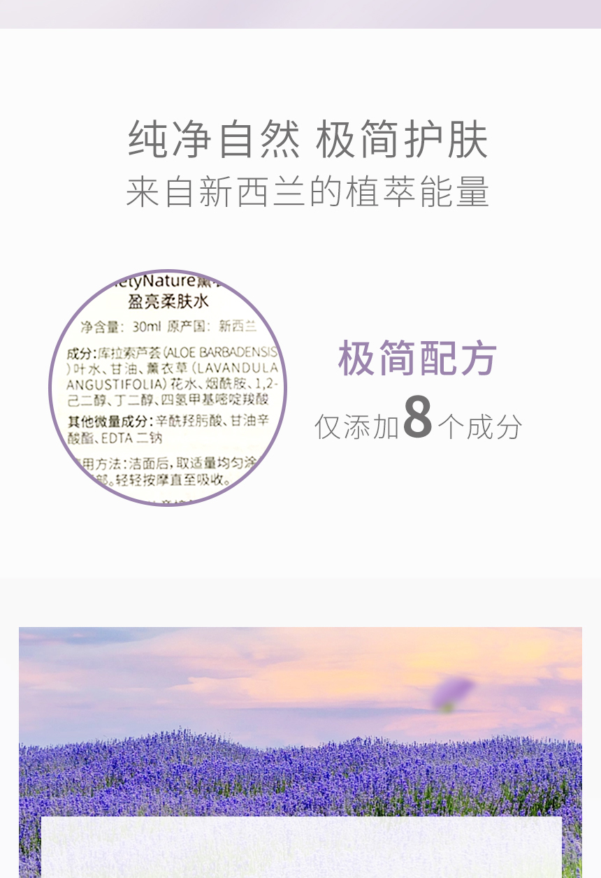 新西兰NinetyNature薰衣草水乳 盈亮柔肤水盈亮瀑布乳 保湿舒缓滋润护肤