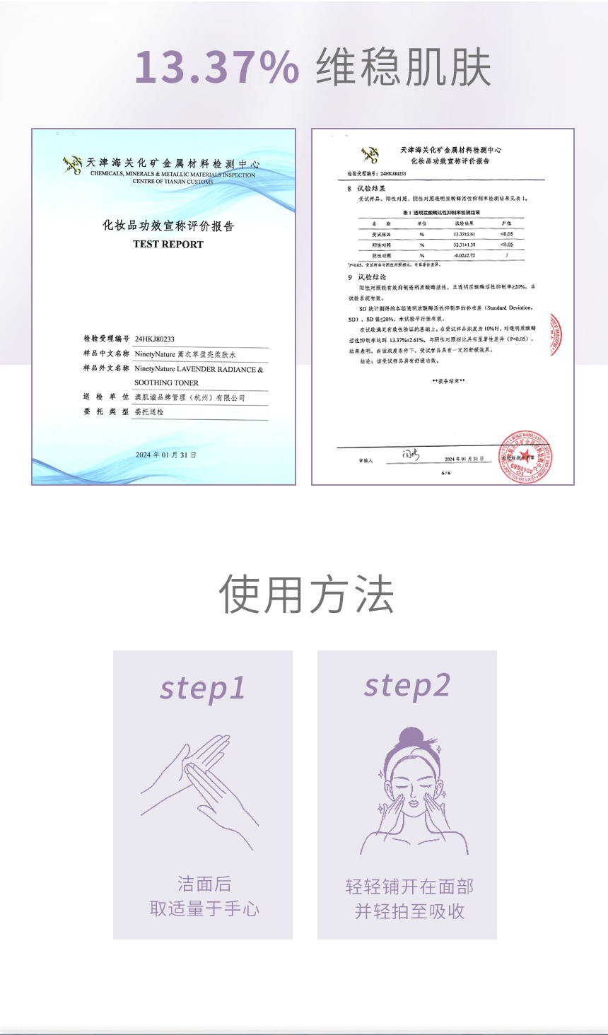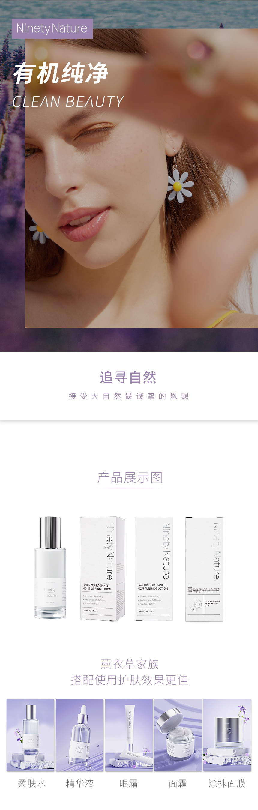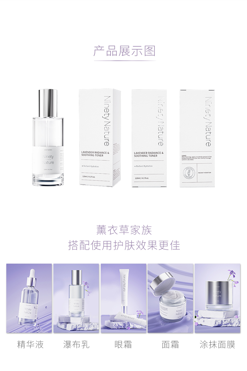新西兰NinetyNature薰衣草水乳 盈亮柔肤水盈亮瀑布乳 保湿舒缓滋润护肤
