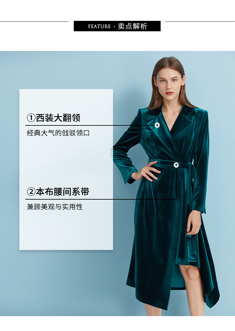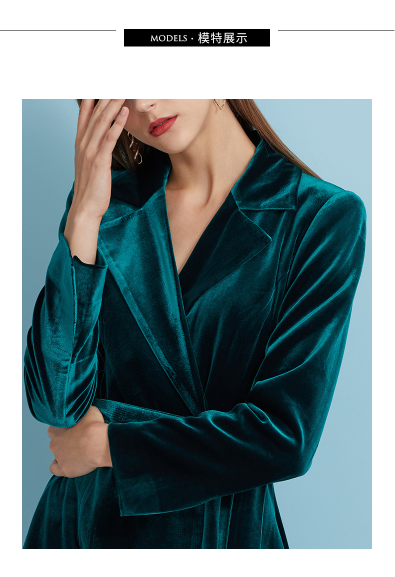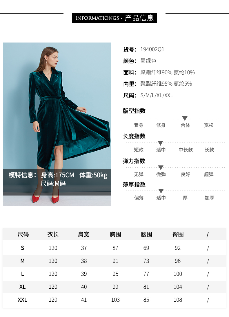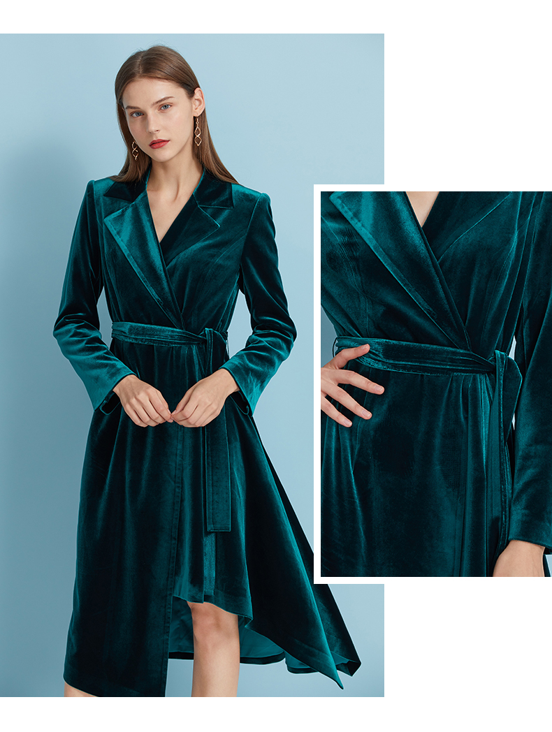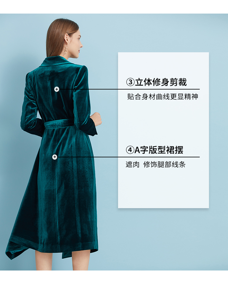 IWY/秋冬新款裙子女复古丝绒连衣裙墨绿色长裙系带a字裙收腰显瘦194002Q1
