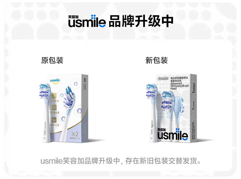 【代发】usmile笑容加电动牙刷头缓震亮白款刷毛替换刷头成人通用