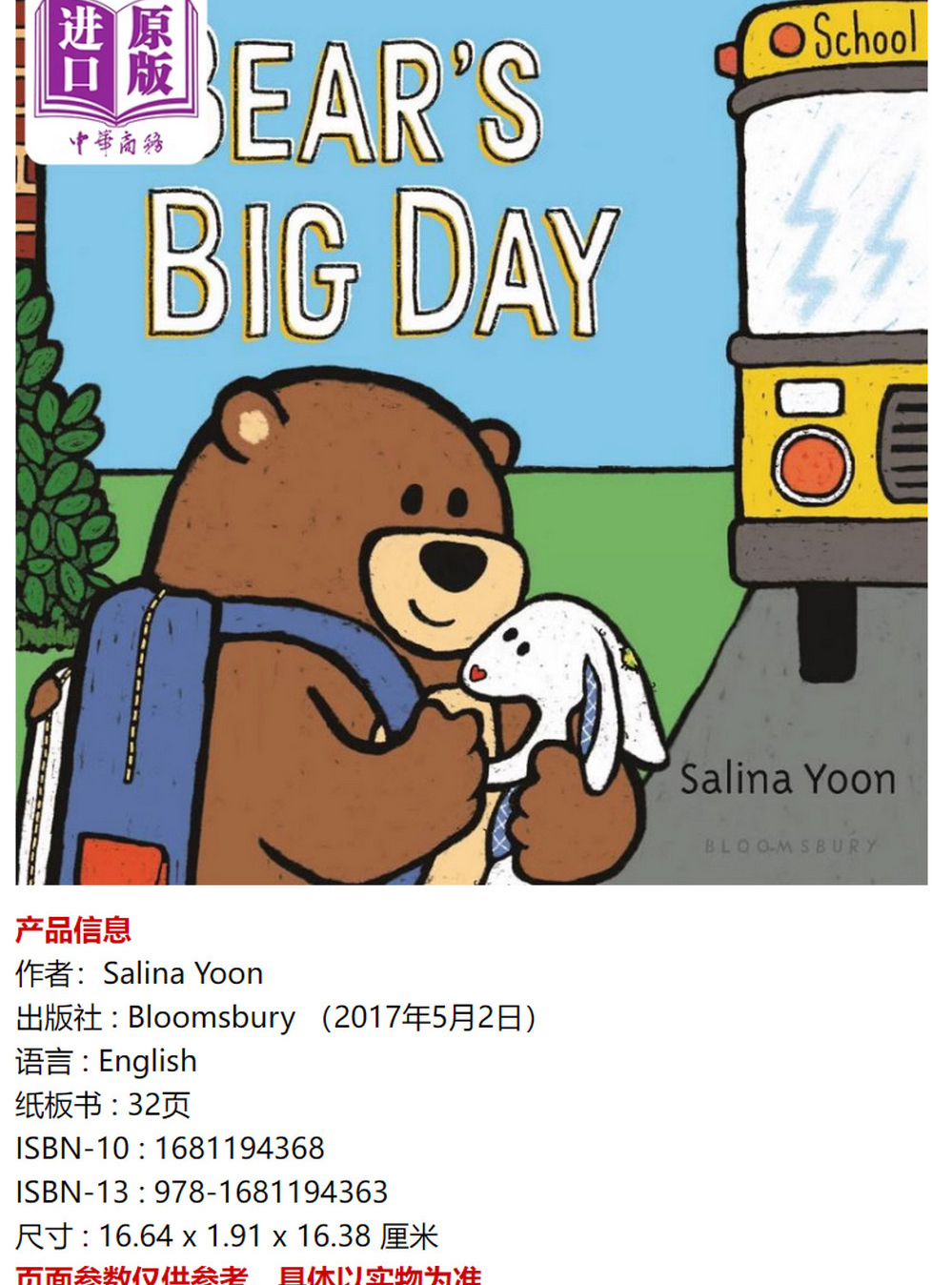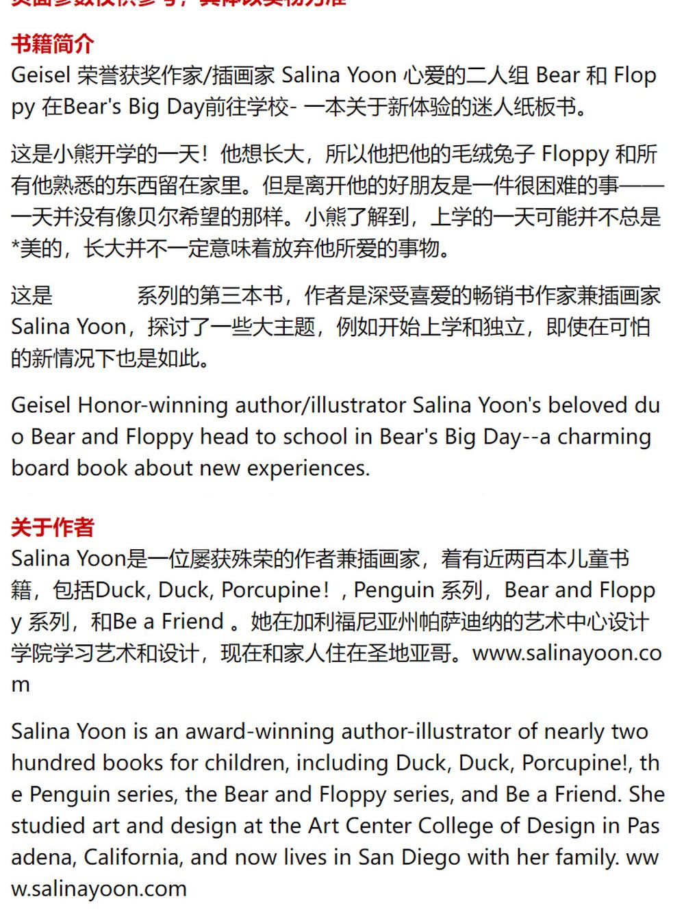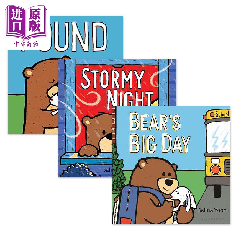 预售 【中商原版】Salina Yoon 熊囧囧与兔太郎系列3册套装 Bear and Floppy Found Stormy Night Big Day 英文原版 儿童绘本纸板书