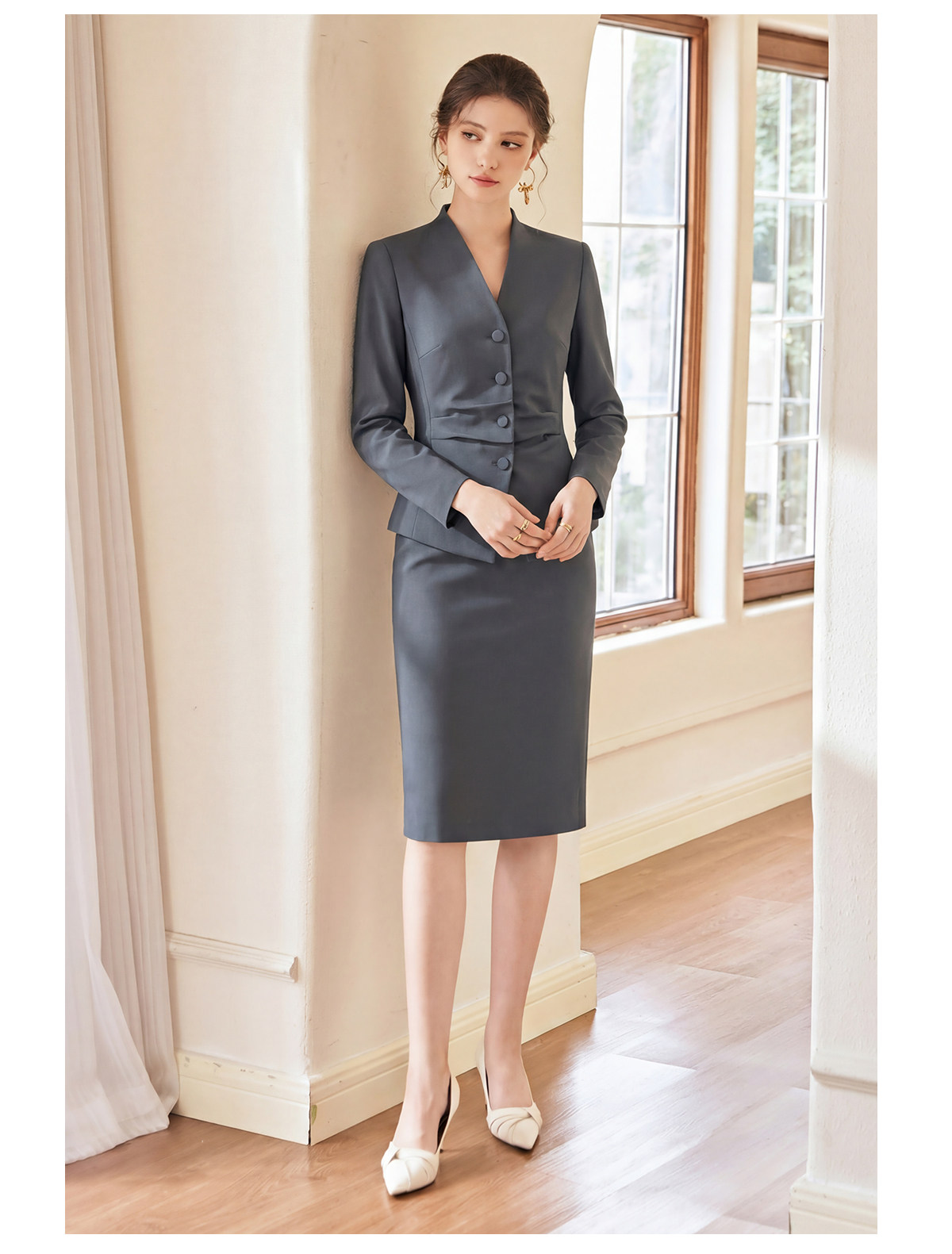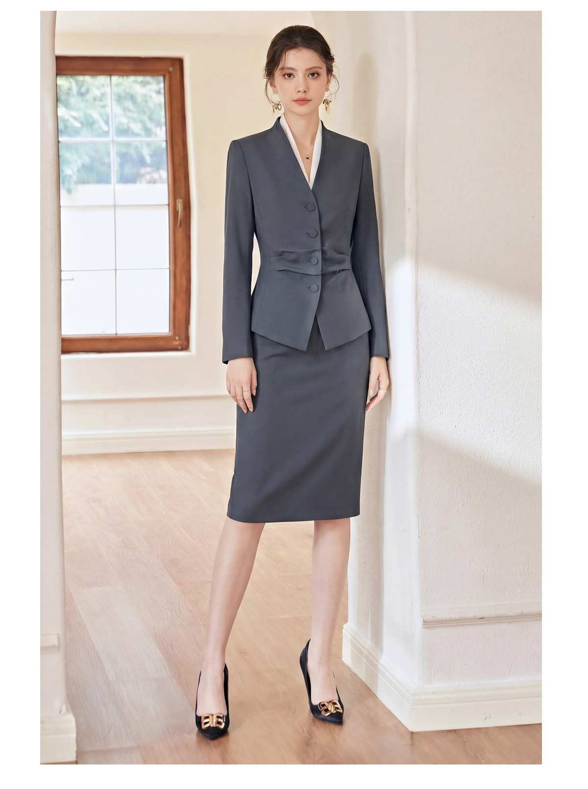 IWY/气质商务灰色西装套裙女高级感通勤职业装时尚工作服两件套WCS223
