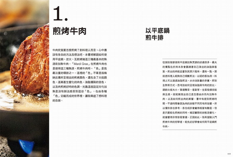 煎烤是最基本的牛肉處理方式,要注意肉在高溫中逐漸產生變化的細節,透過色澤和油脂爆裂的音色來判斷熟成多少,本章節將告訴你三種常用煎烤模式,相當實用速成。