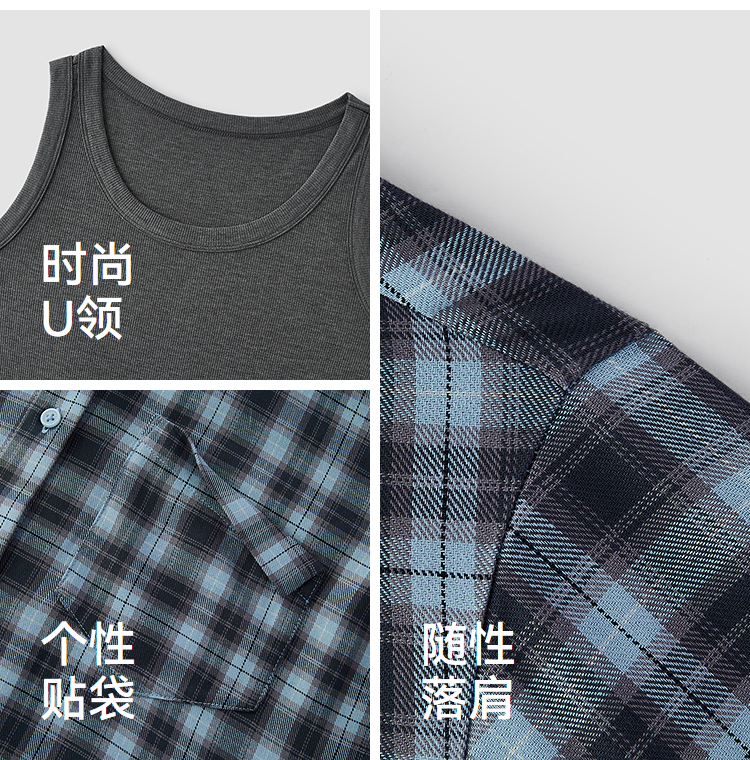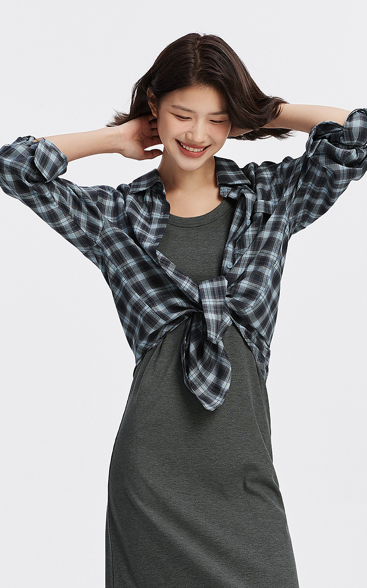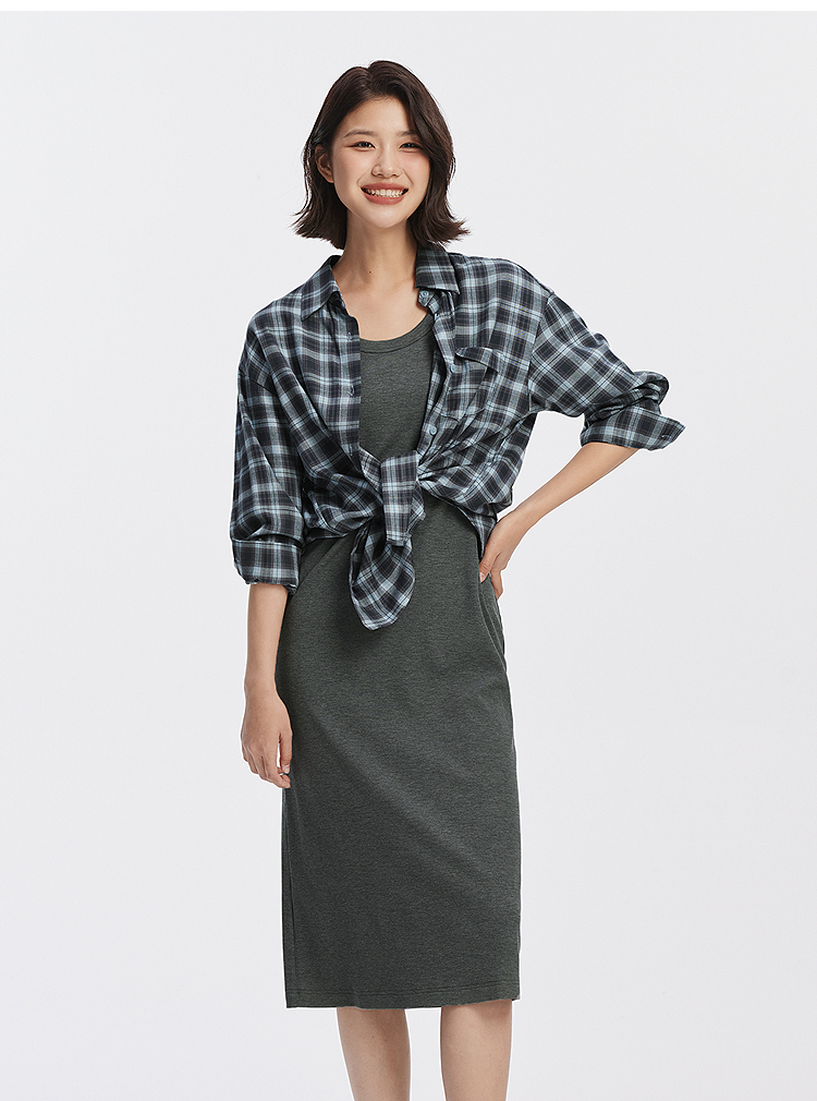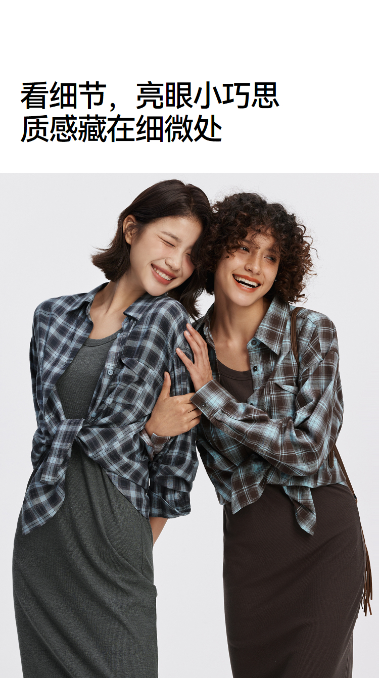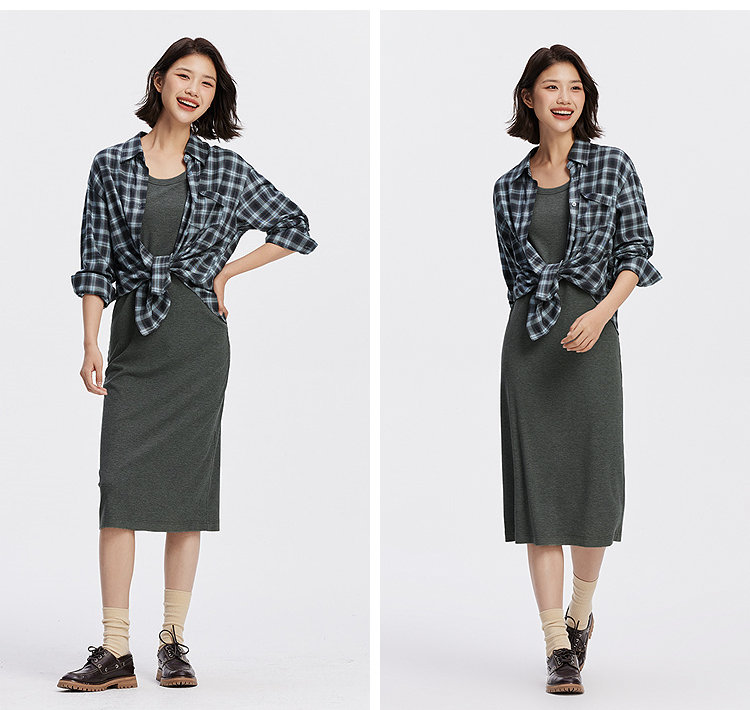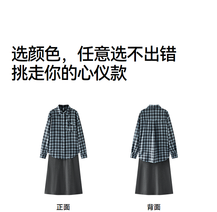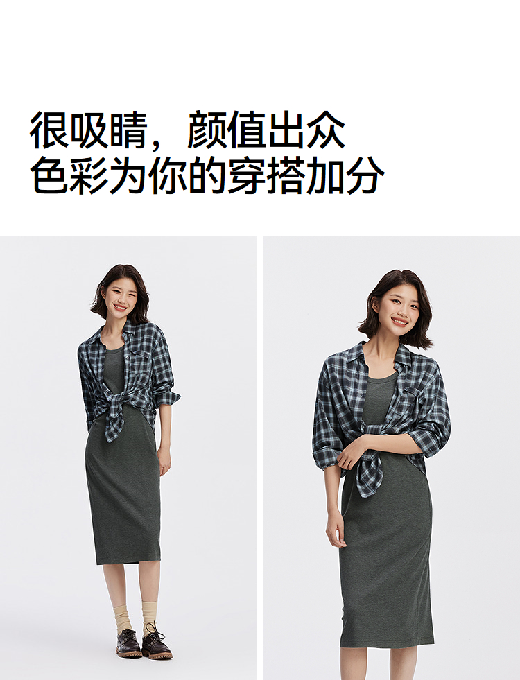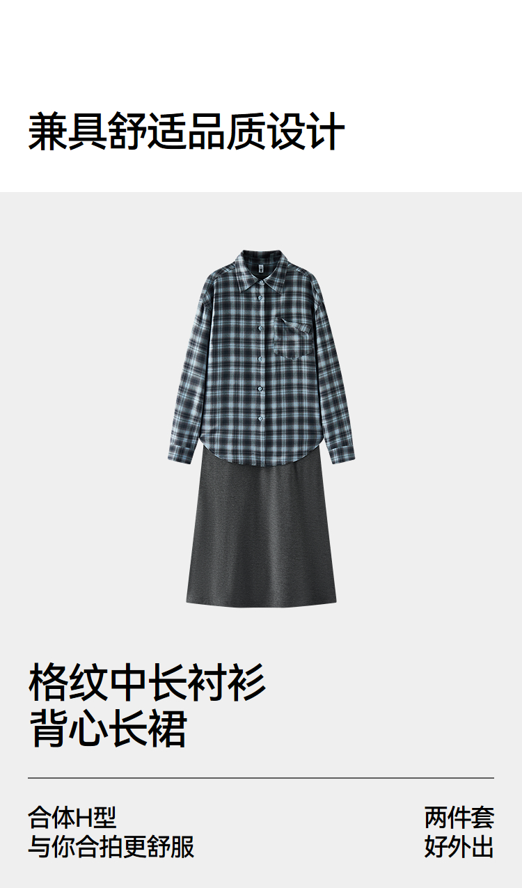 [商场同款]森马连衣裙女背心裙格纹中长款衬衫2025秋季新款两件套