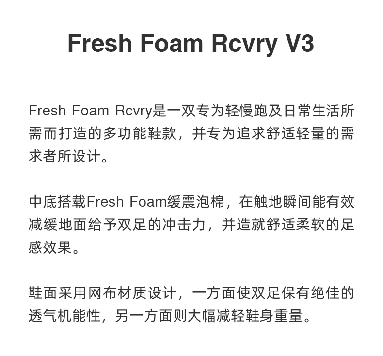 NEW BALANCE/NB Rcvry V3 男款慢跑舒适轻量缓震跑步运动鞋
