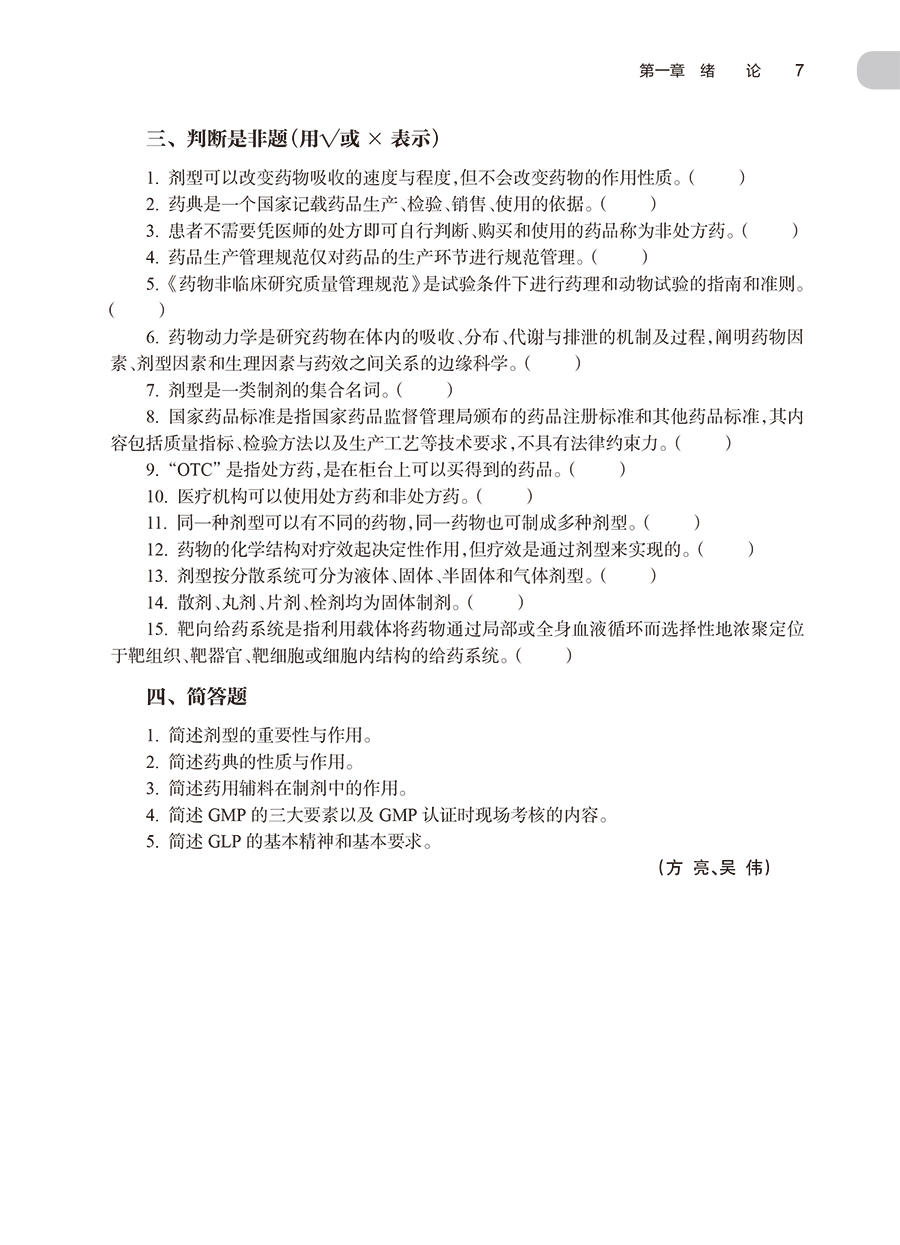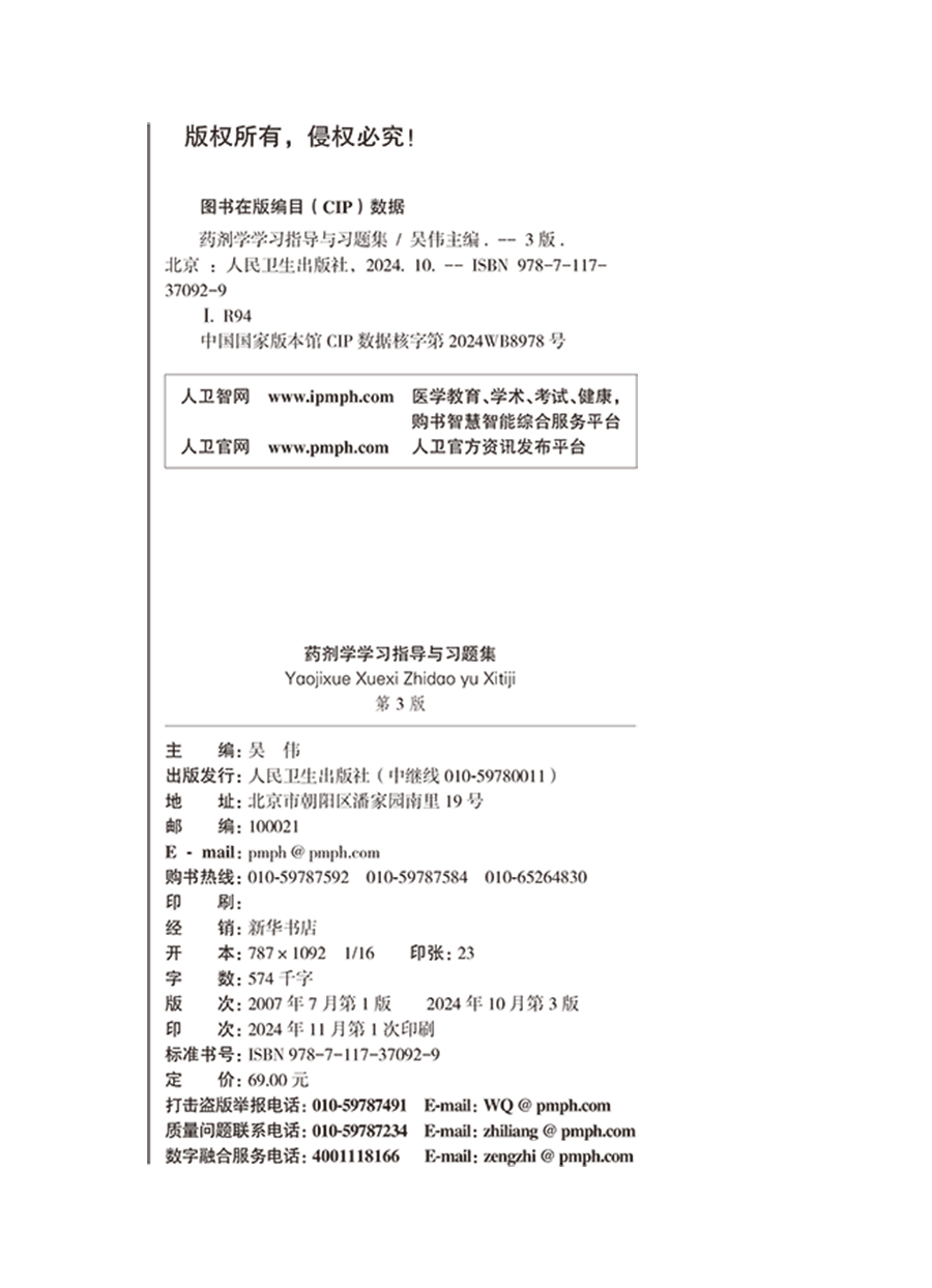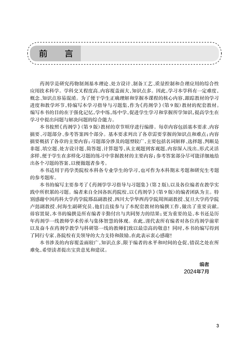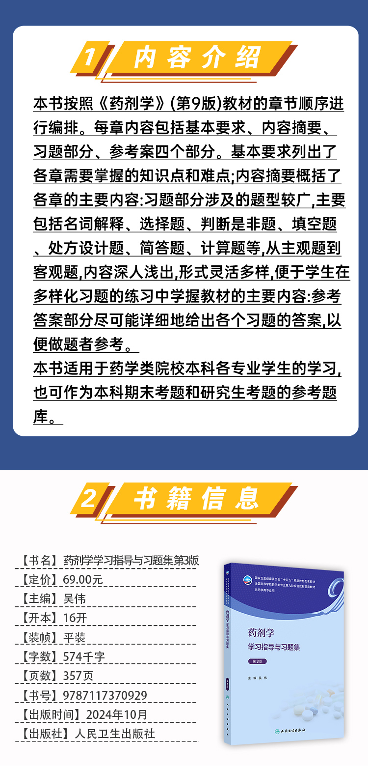 药剂学学习指导与习题集 第3三版 十四五规划全国高等学校药学类专业第九轮规划教材配套教材 供药学类专业用 吴伟人民卫生出版社