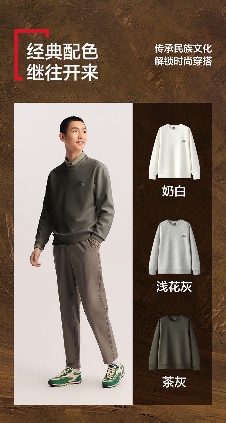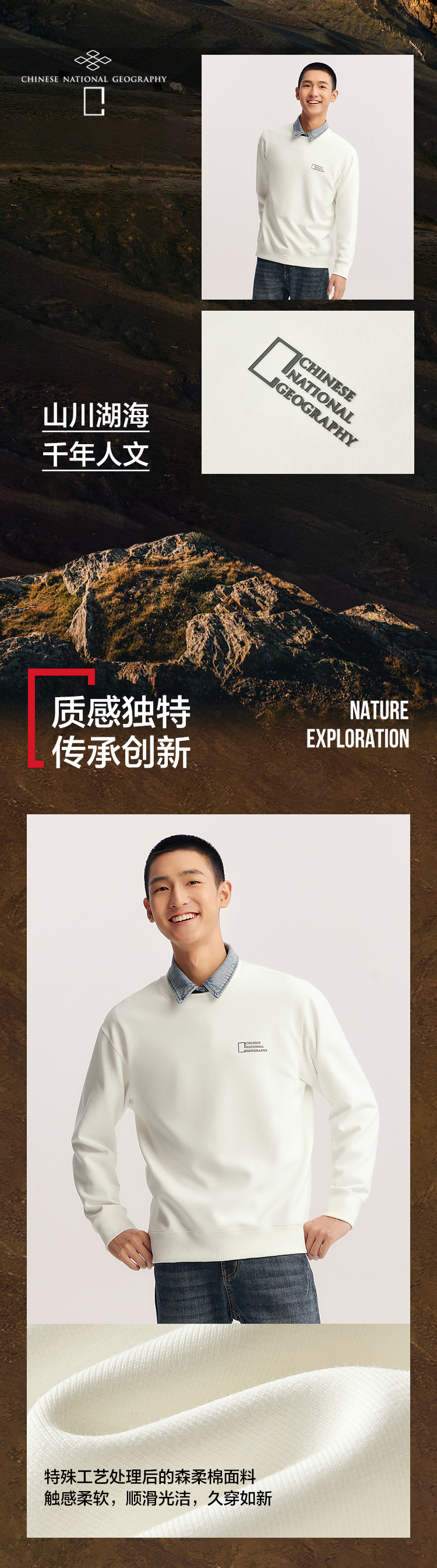 森柔|森马中国国家地理嘉绒系列卫衣男春季联名印花套头圆领上衣