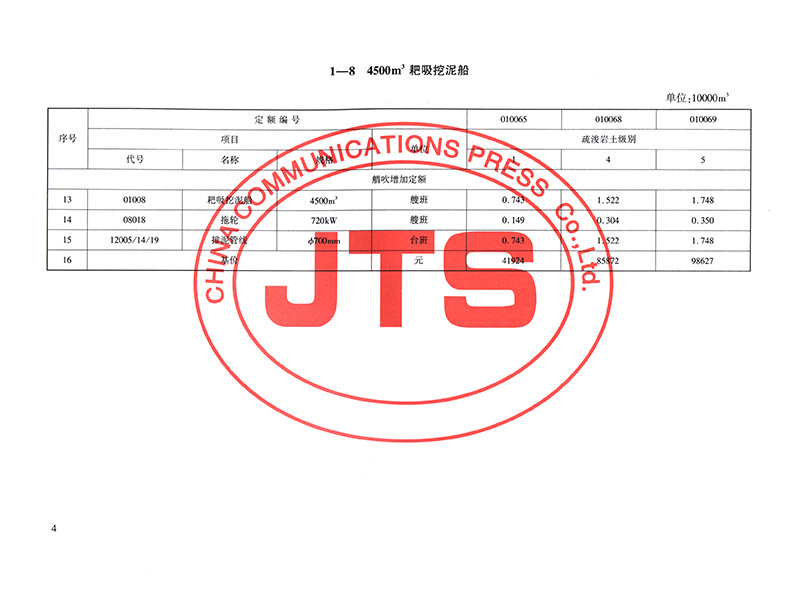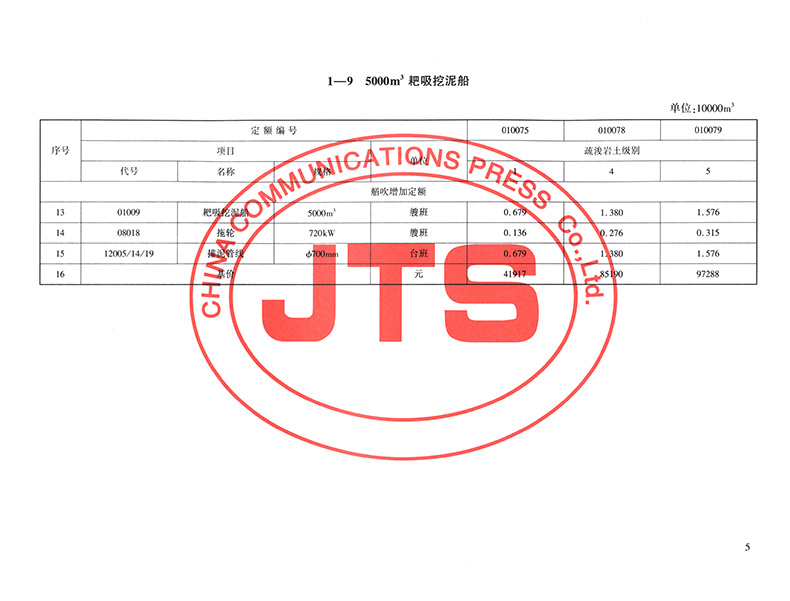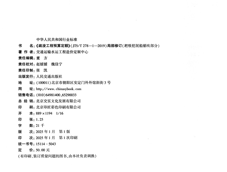 书名:《疏浚工程预算定额》(JTS/T278-1-2019)局部修订(耙吸挖泥船艏吹部分)