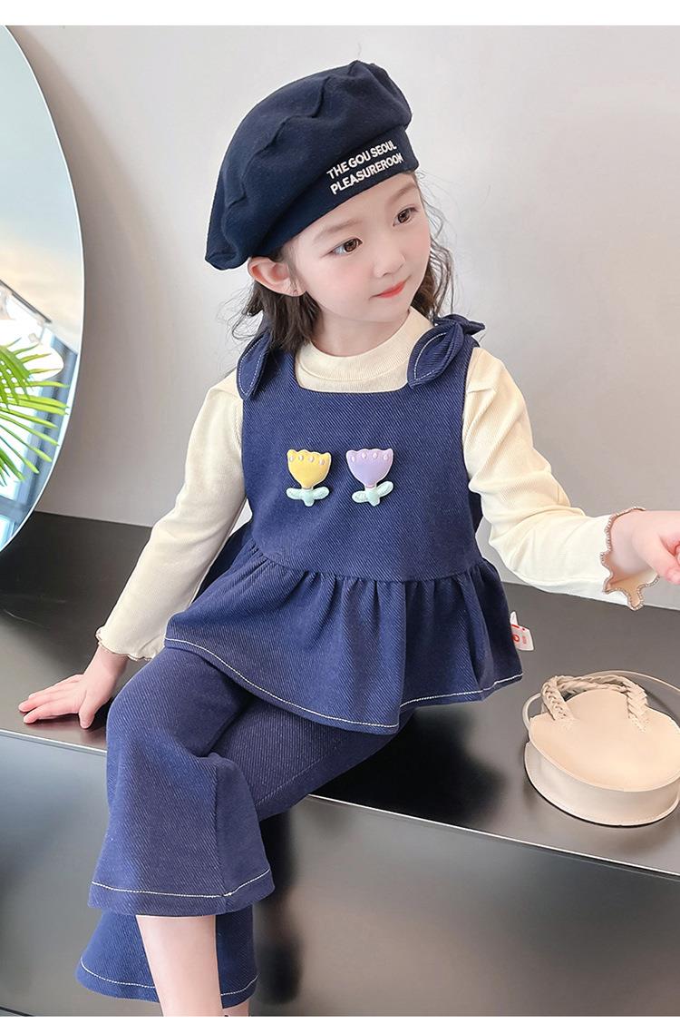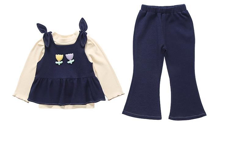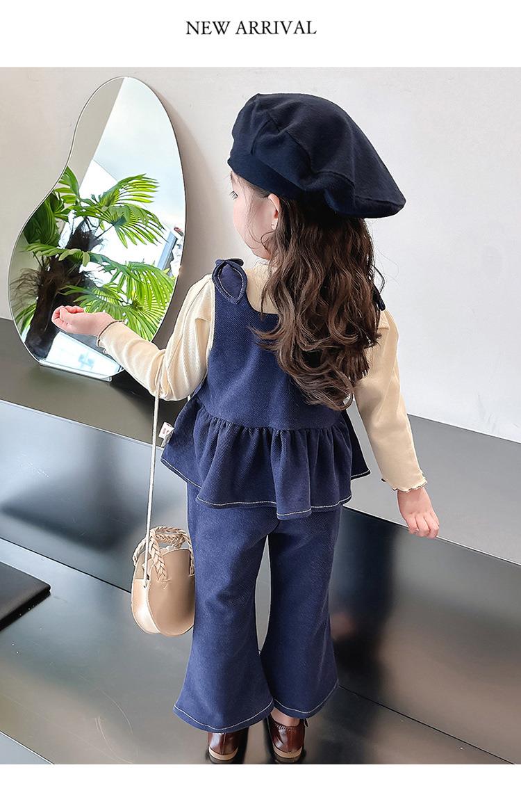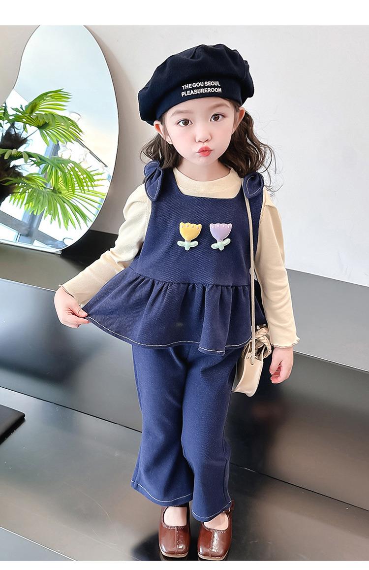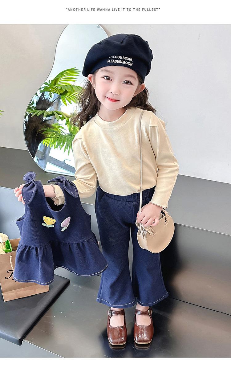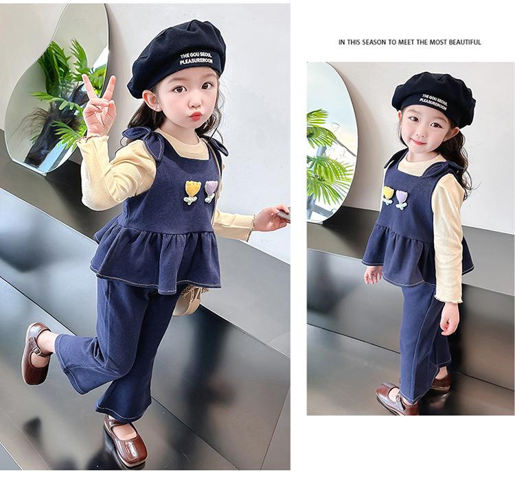 女童花朵牛仔三件套2024春季新款韩版微喇阔腿裤套装童装