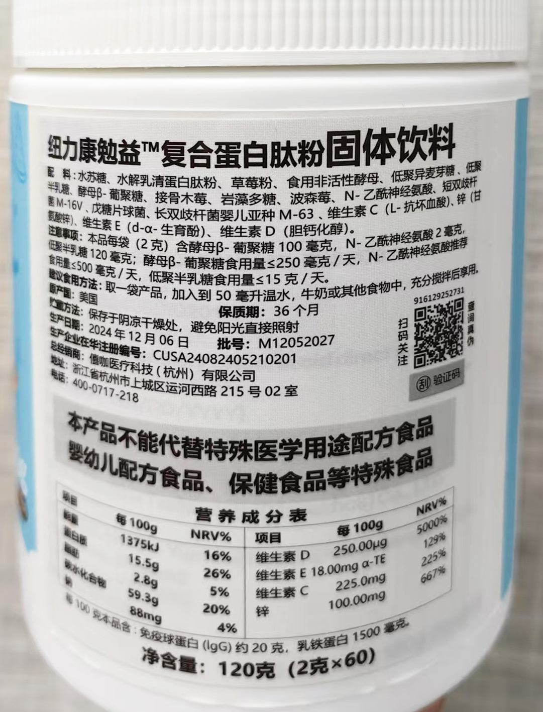 ² 清仓【美国进口小象复合蛋白肽】每包含400mg球蛋白+Epicor+盐藻多糖+接骨木莓+酵母葡聚糖乳铁蛋白粉+燕窝酸等 2g*60包/罐 HM02-CRMM-YS【小象店庆专场】