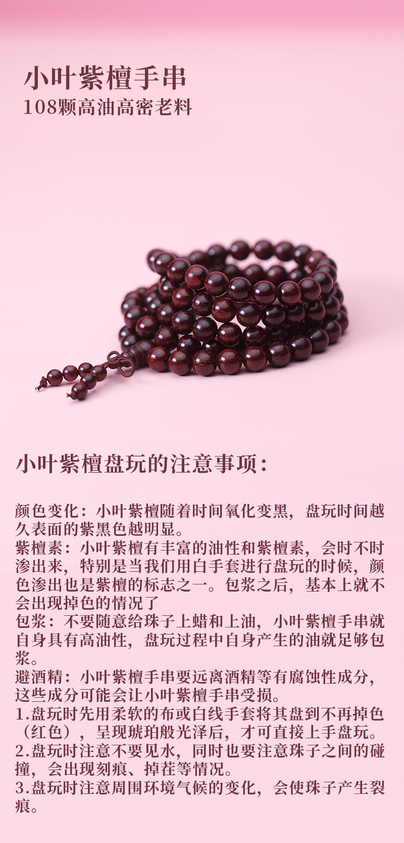 【小叶紫檀手串108颗】器悟雅玩 | 紫檀素串 高油高密