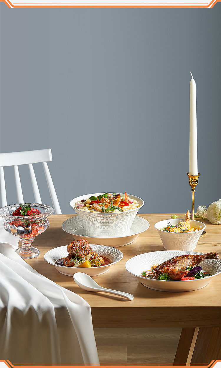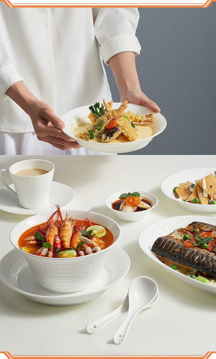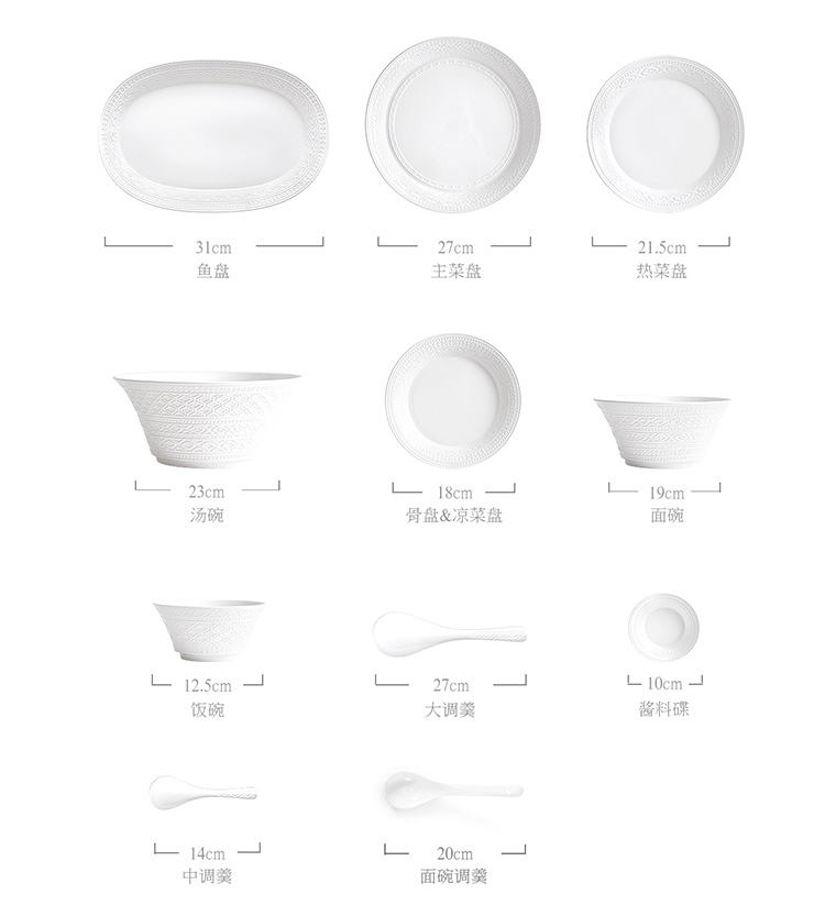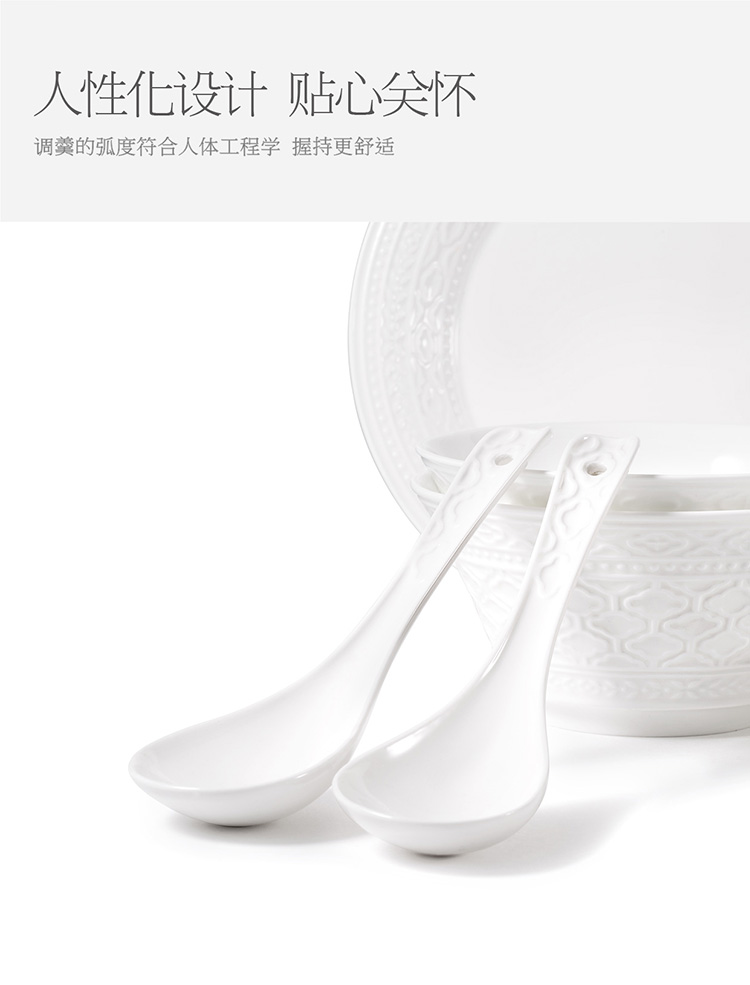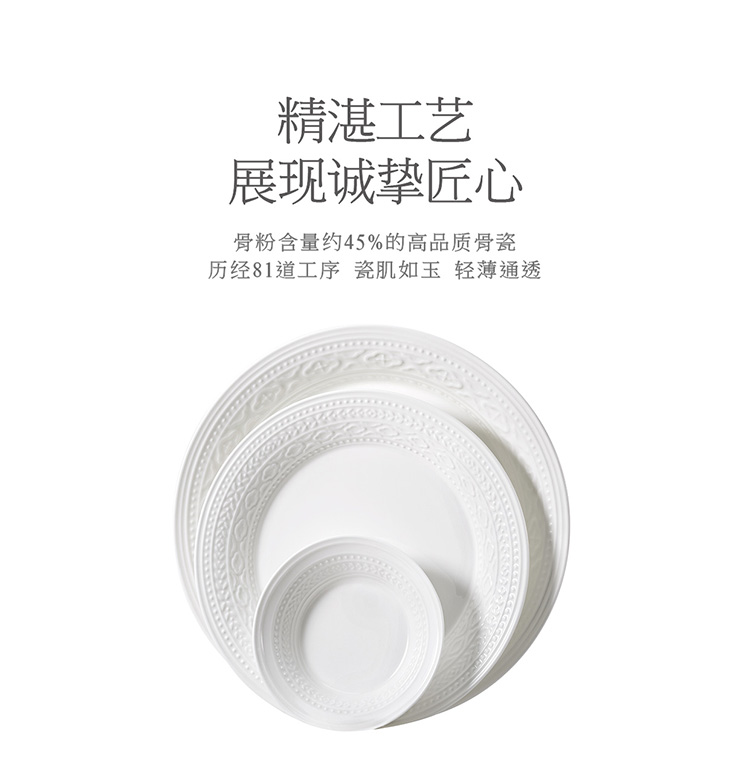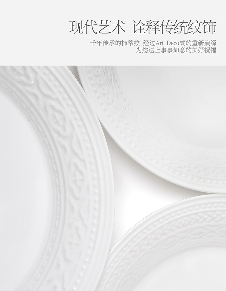 【玛戈隆特】B7F 6人份纯白浮雕餐具套装简约创意个性盘碗碟套装家用礼品