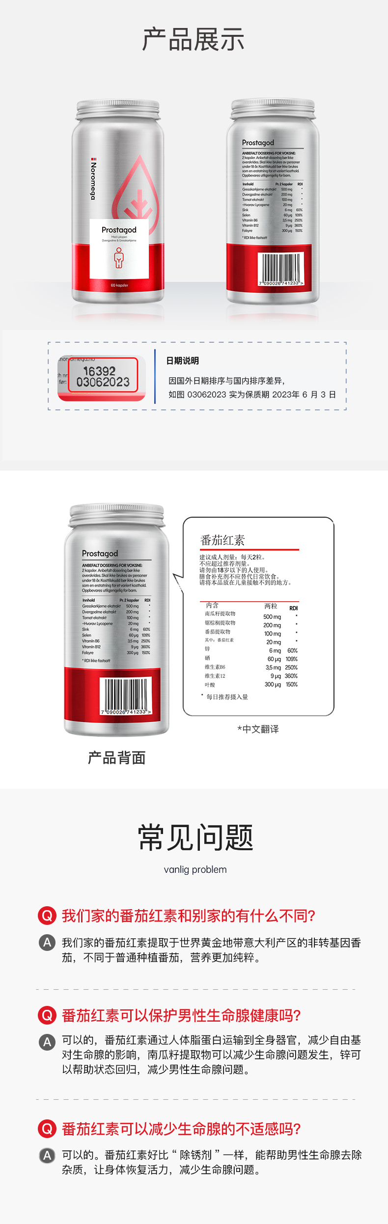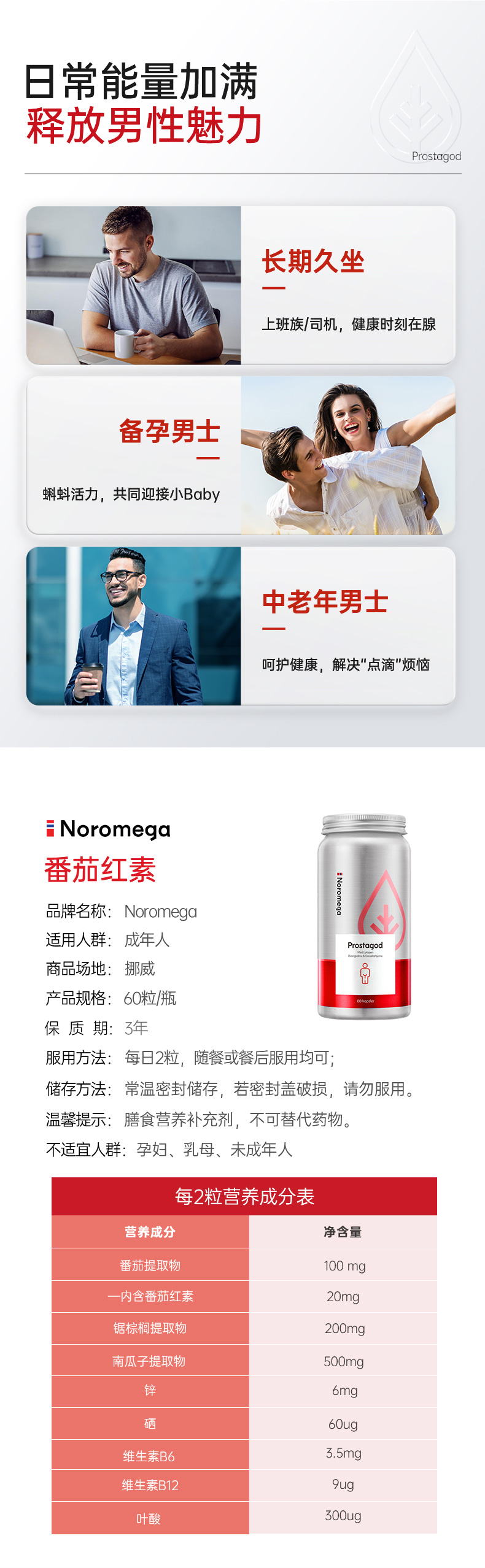 不打烊!男士刚需!备孕/尿路/前列腺/增强活力!最低💰209元/瓶!荃网最低价❗️官旗358/瓶!挪威Noromega番茄红素男士胶囊60粒 提升活力无腺困扰 日期26.6