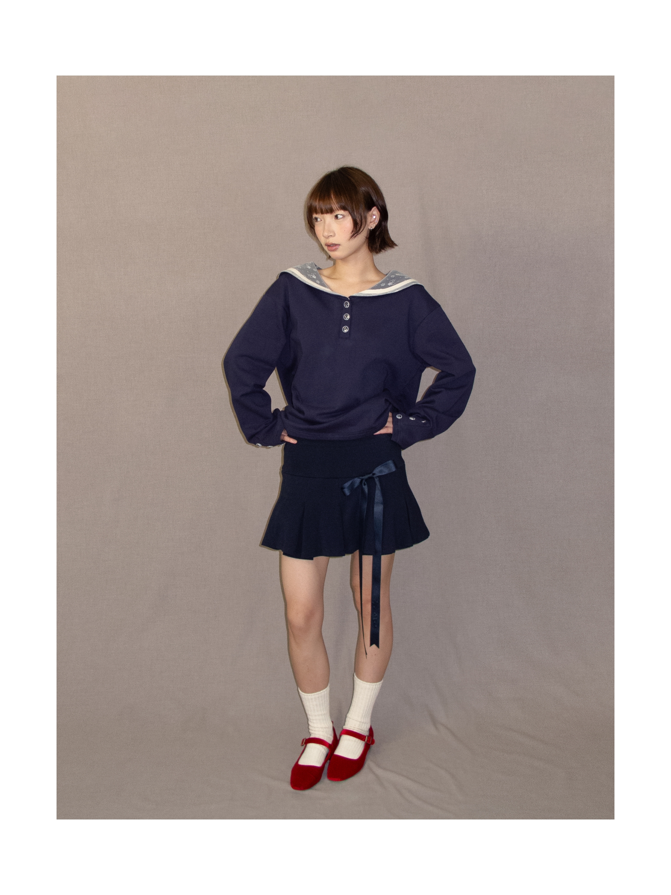 Kaiy Xiao 星星国航海系列 经典蝴蝶结百褶短裙(包括蝴蝶结)