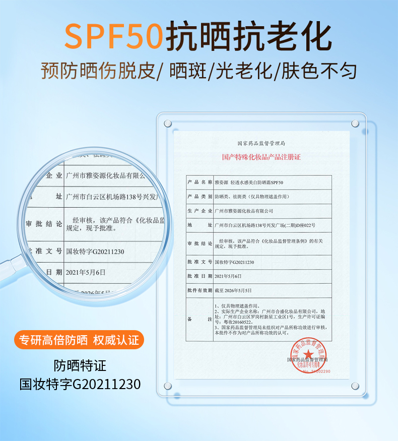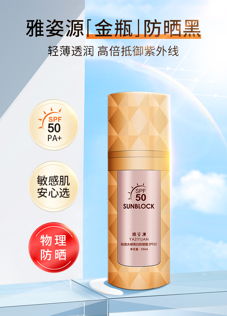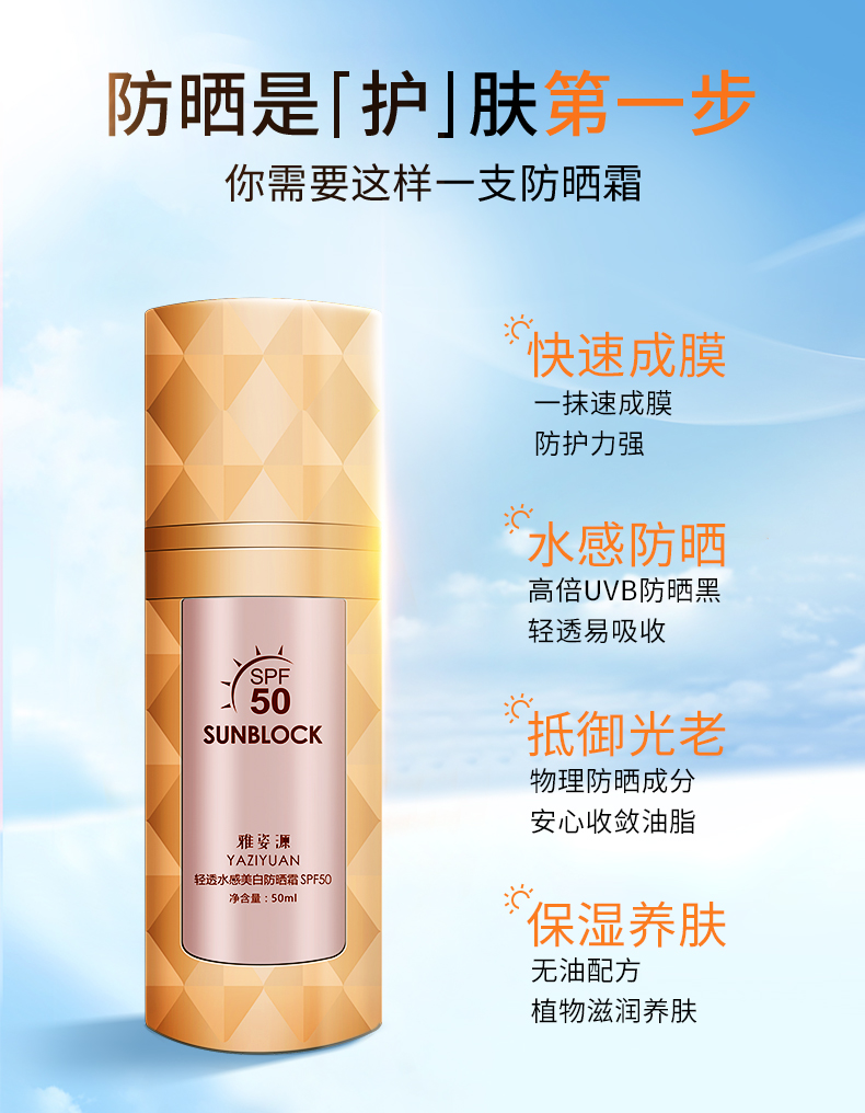 【靓邦素】雅姿源轻透水感美白防晒霜SPF50 50ml