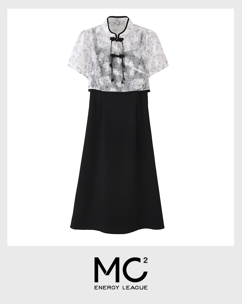 mc2新中式国风套装裙女时尚改良旗袍盘扣上衣吊带长裙两件套裙子