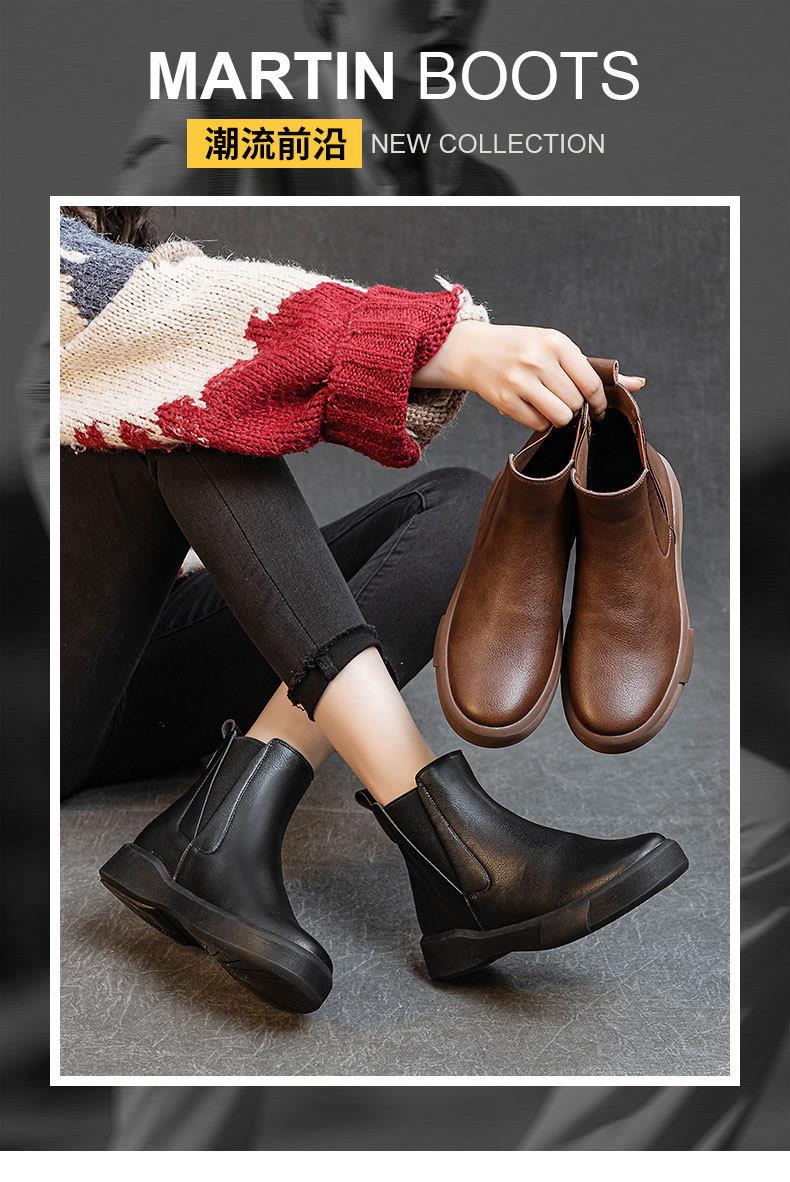 秋冬新款软底真皮马丁靴女百搭厚底短靴英伦加厚切尔西靴子