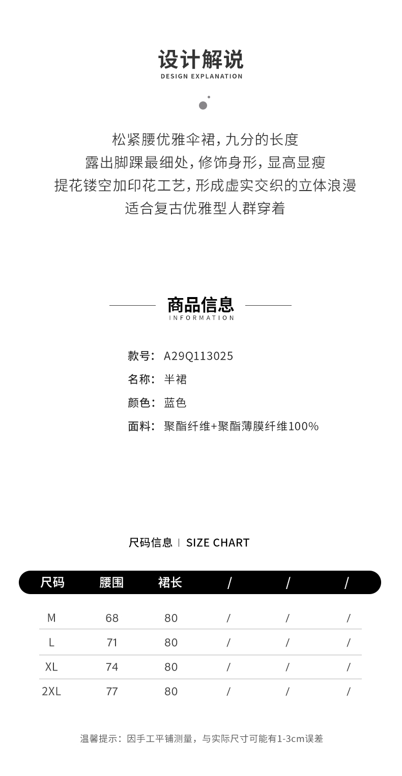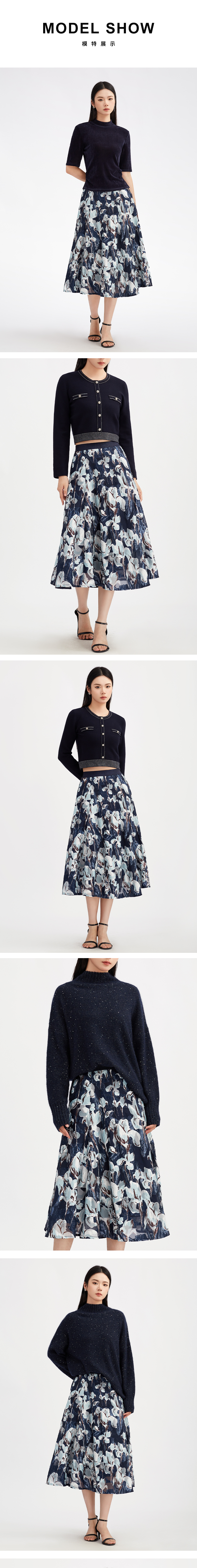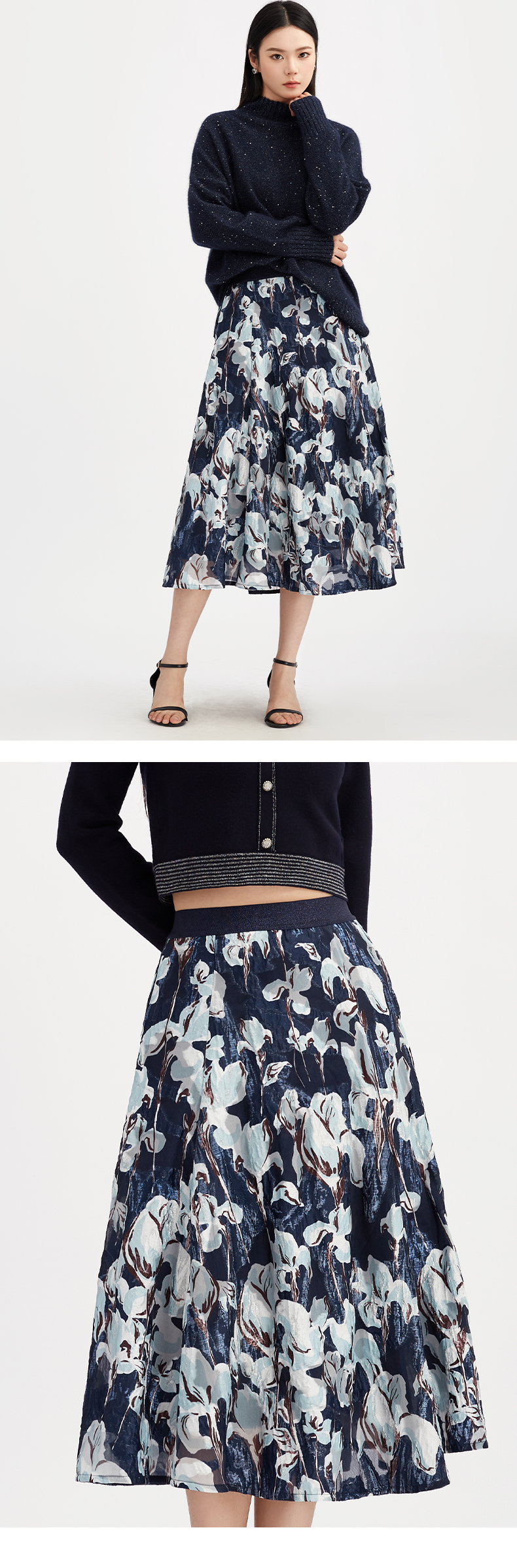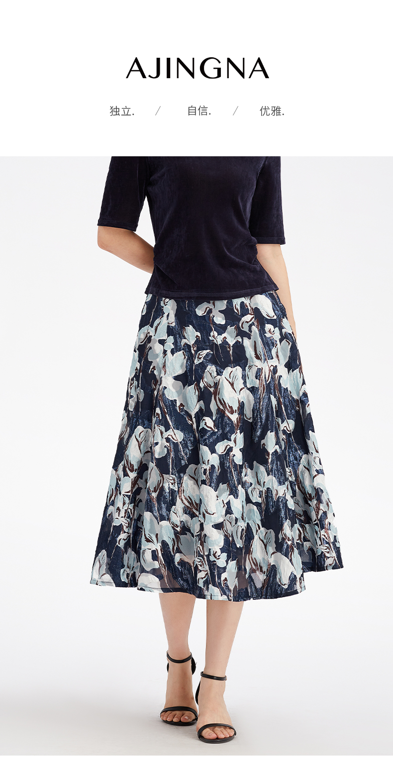 【商场同款】阿菁娜秋季新款提花镂空印花伞裙松紧腰九分裙立体感复古半裙A29Q113025