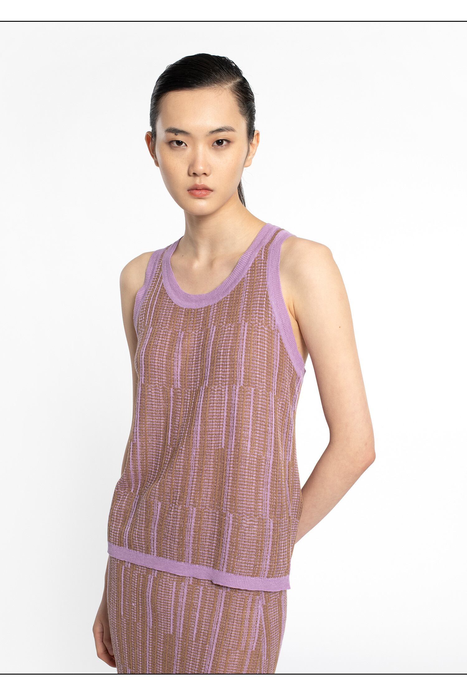 322工房经典再造羊毛羊绒圆领针织T恤2023春夏条纹针织套头衫B024