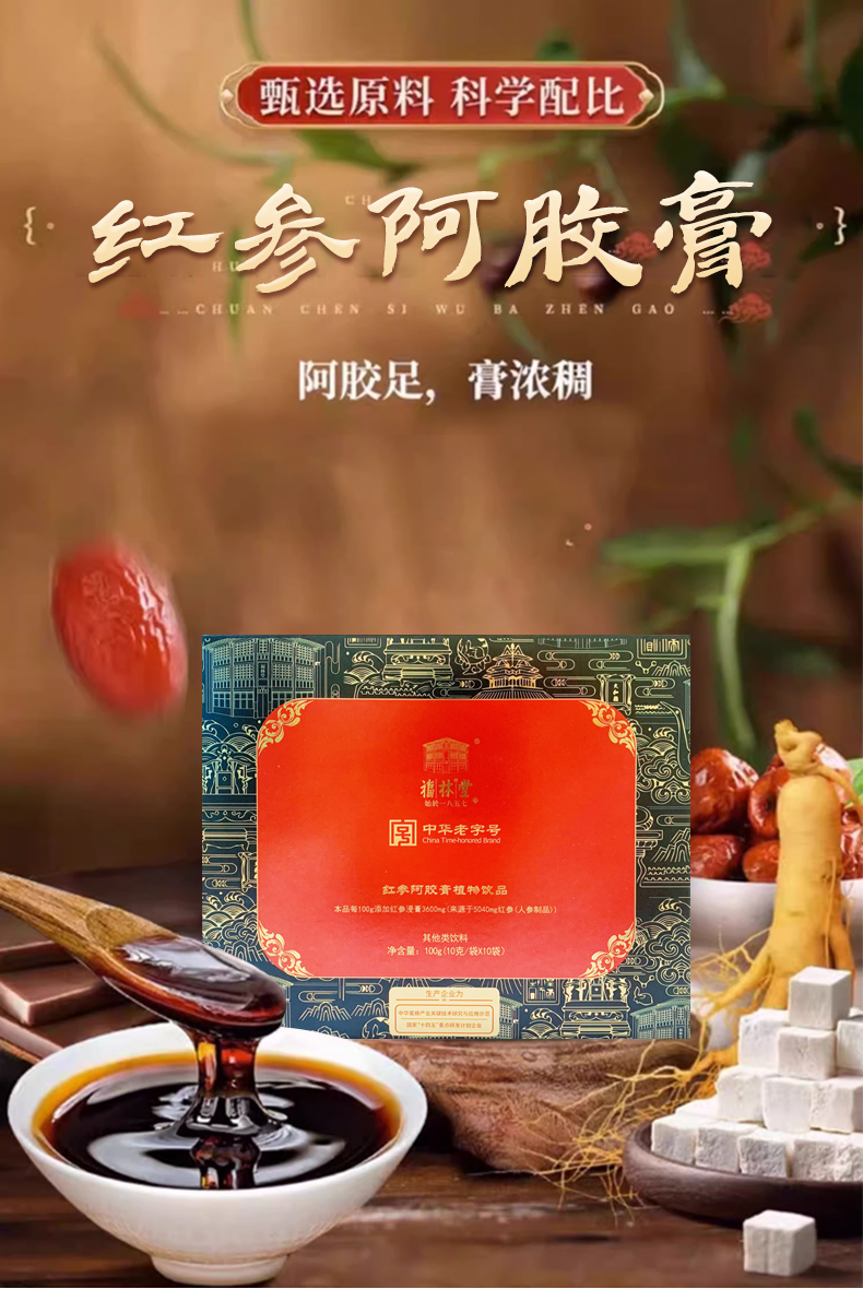【福林堂红参阿胶膏】 传统滋养 冬日暖饮 便携小袋 100g(10g10袋)5盒lc