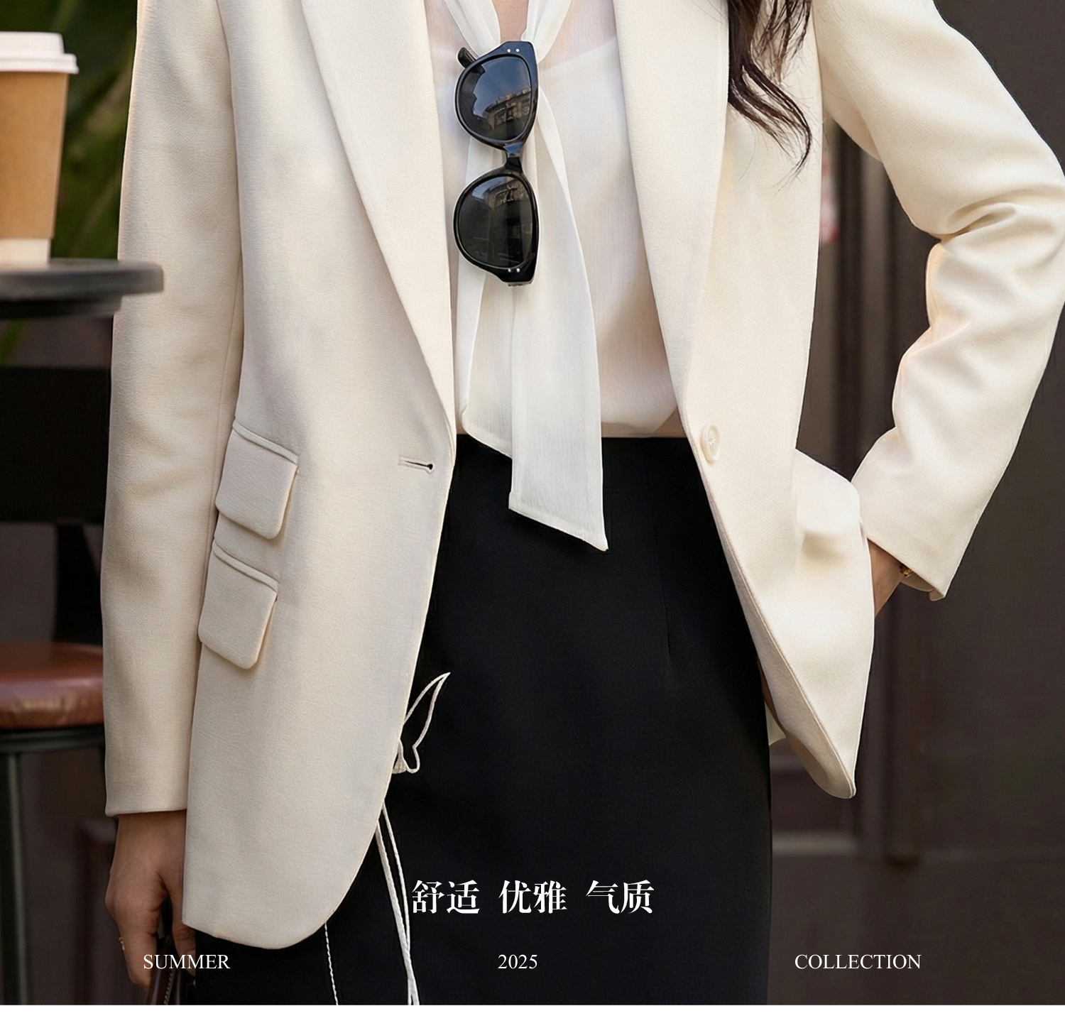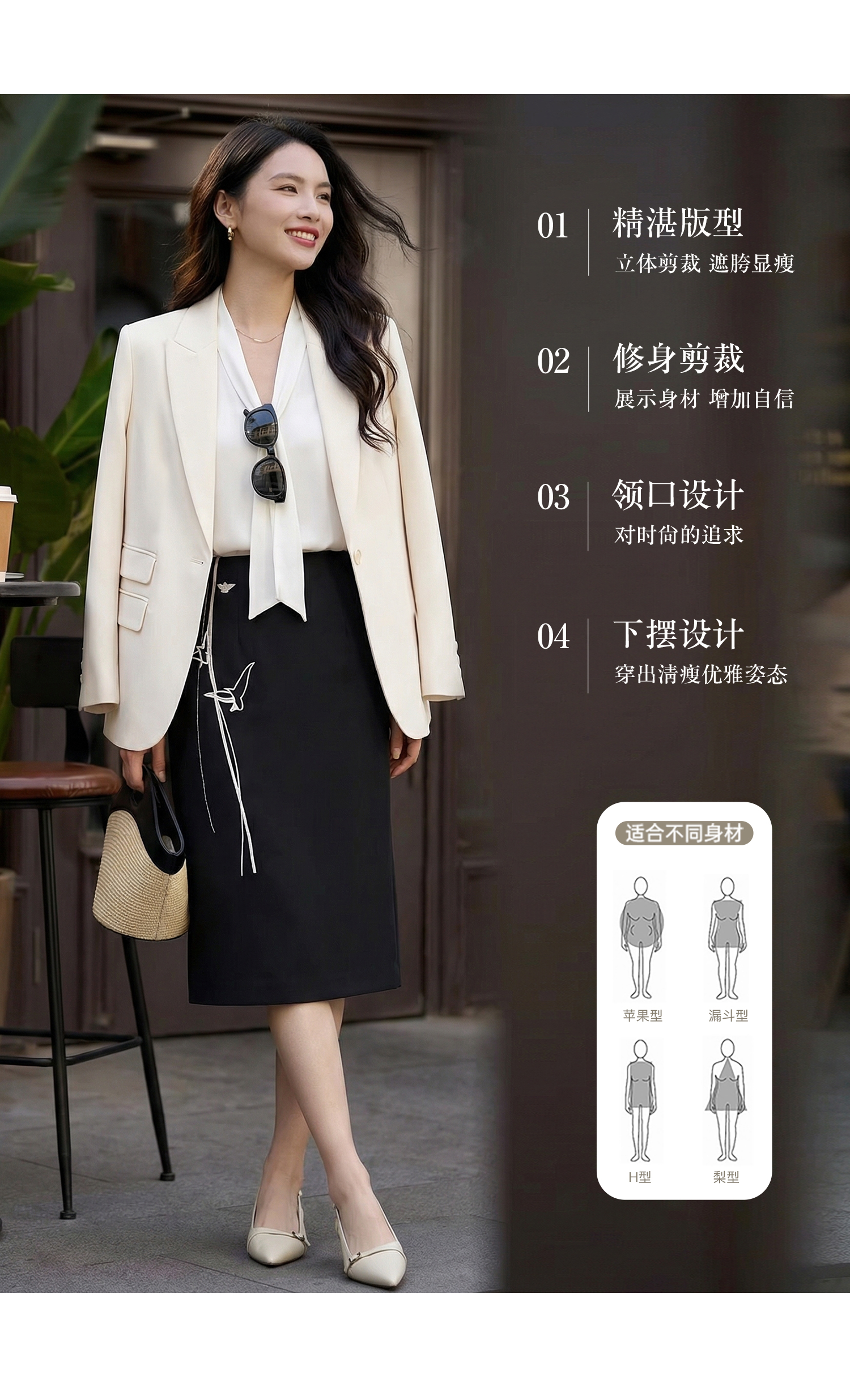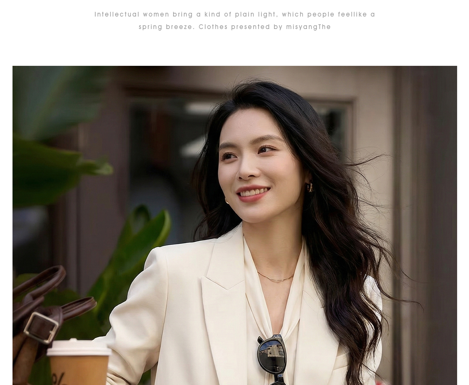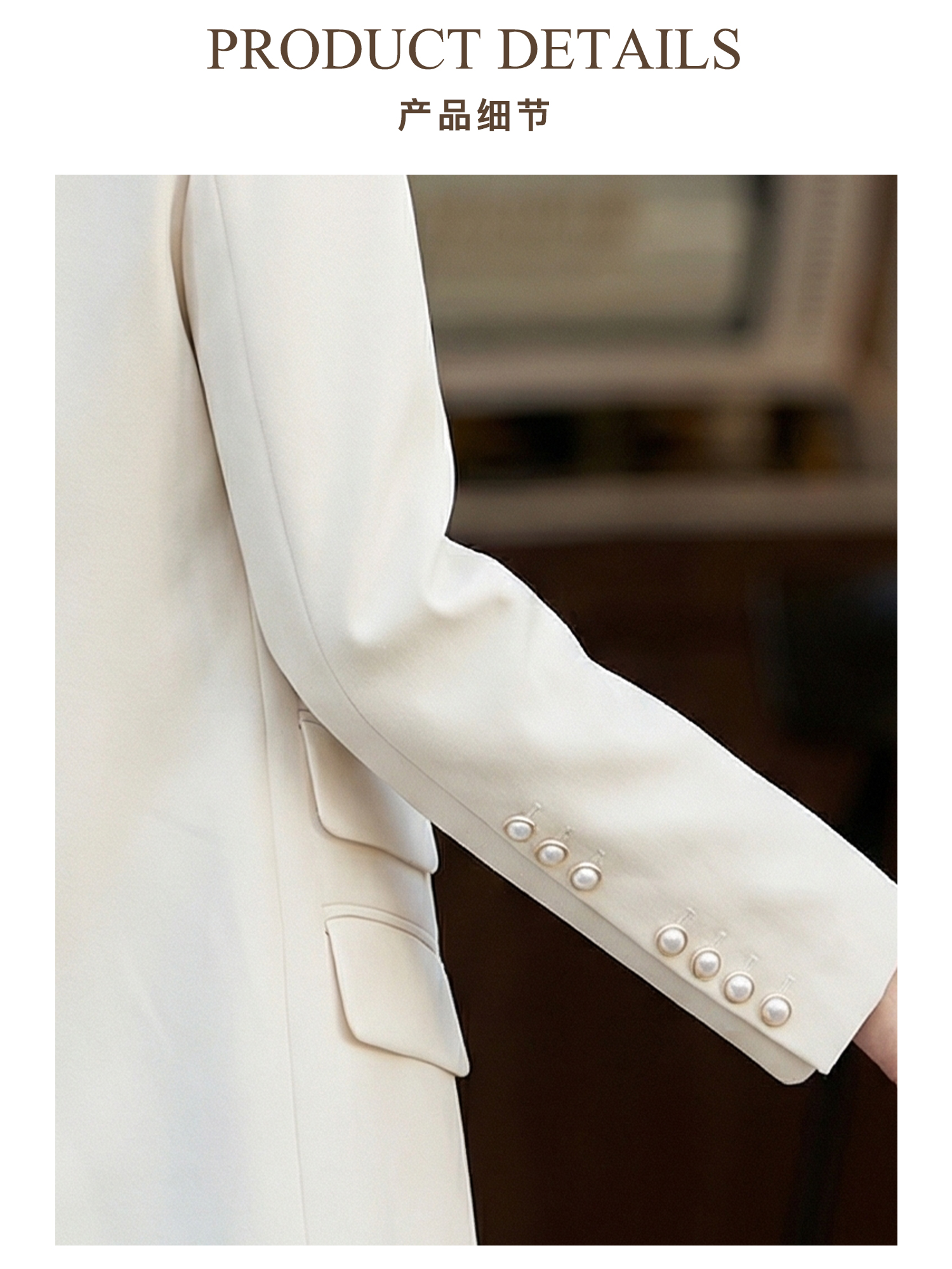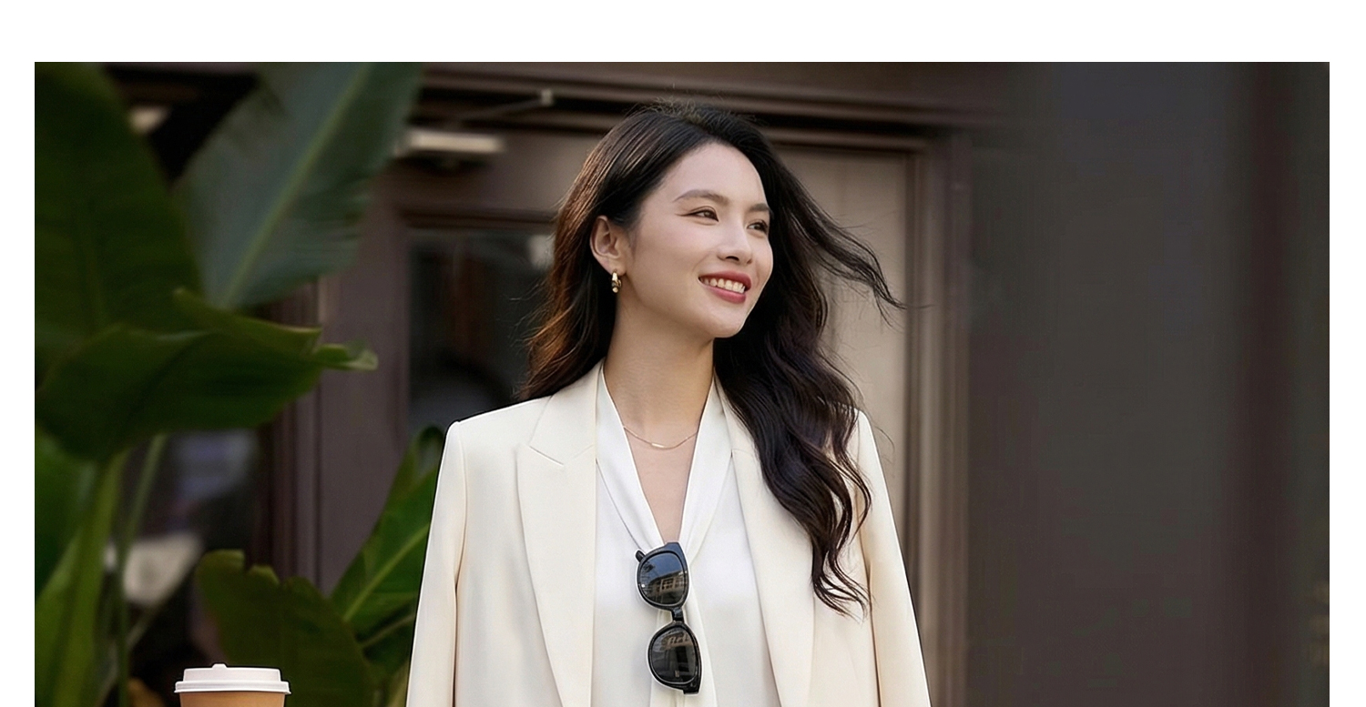 「珍珠扣醋酸通勤西装」温柔高级 微宽松H型轮廓 利落不挑身 优雅减龄 米思阳2026春季时尚气质职业修身显瘦立体剪裁精致西服外套2486