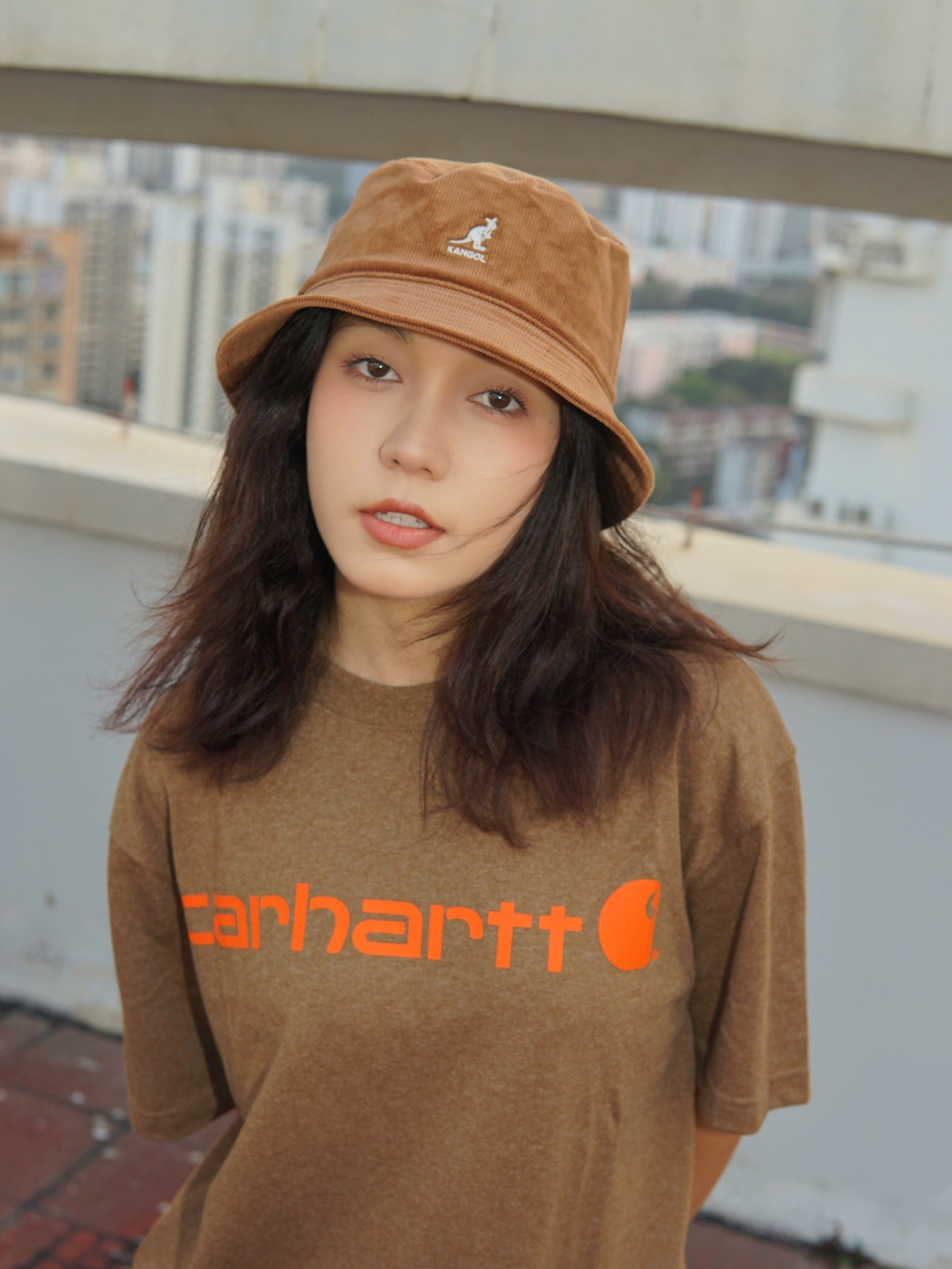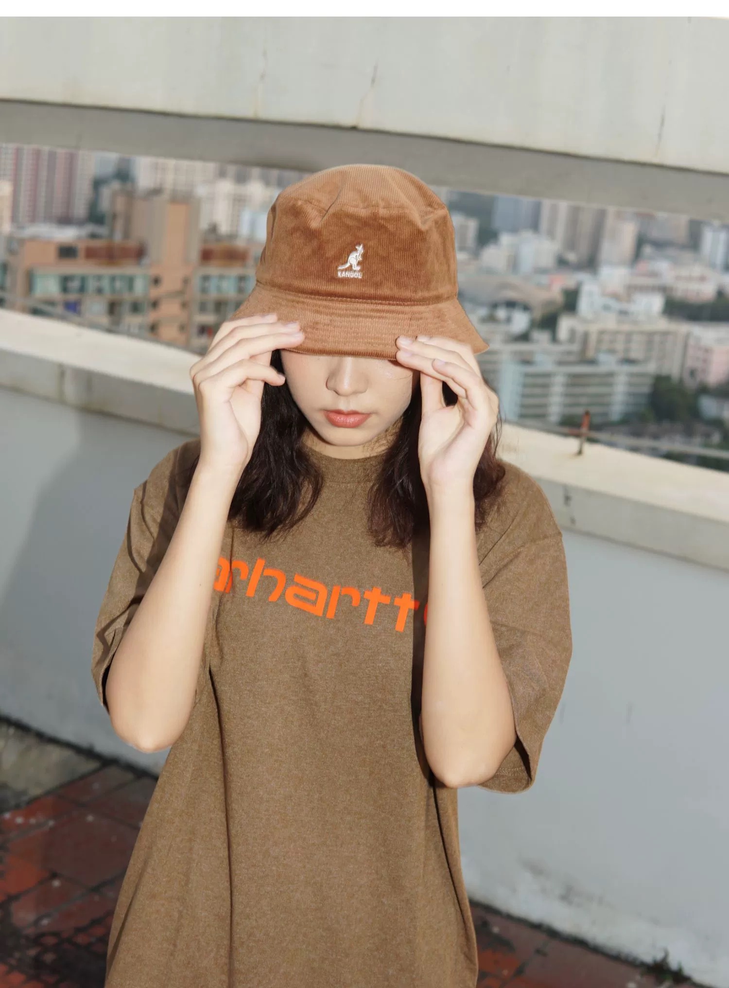 Kangol Cord Bucket Hat王一博同款袋鼠帽子灯芯绒平底渔夫帽