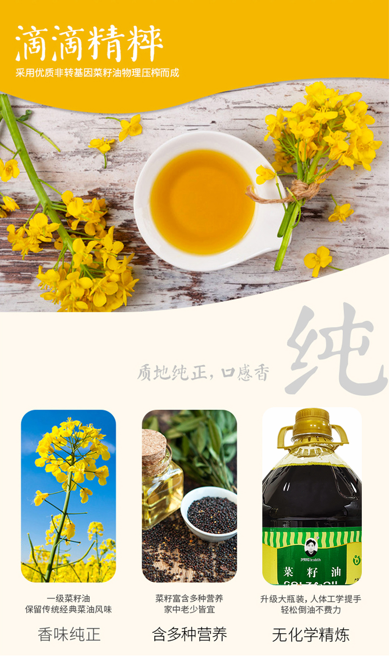 【严选】荆楚好粮油 非转基因二级压榨罗师傅乡村小榨菜籽油5L (厂家直发)