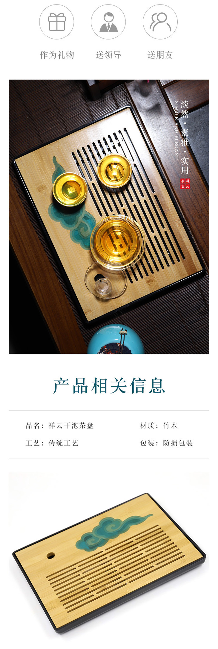 黑色长方形祥云干泡茶盘