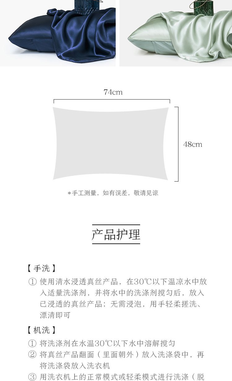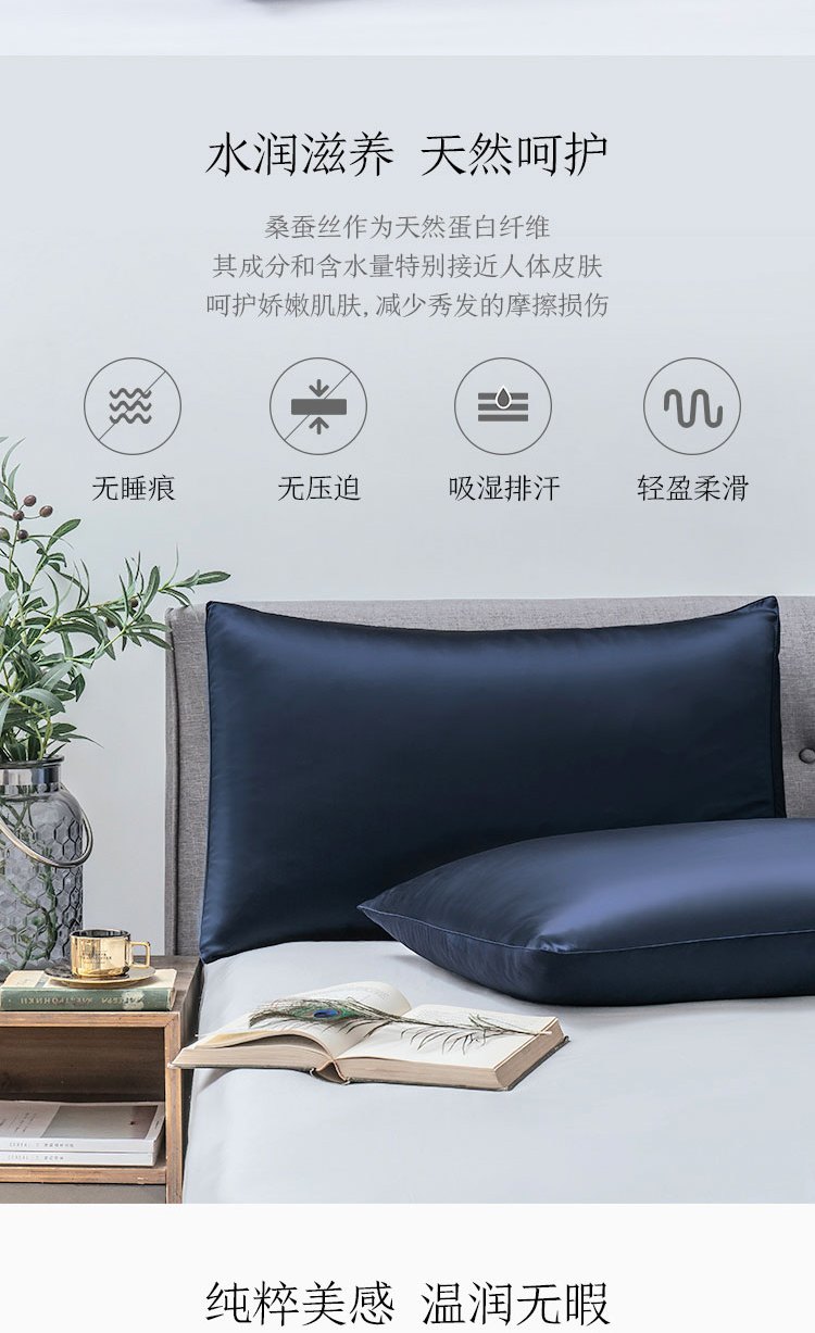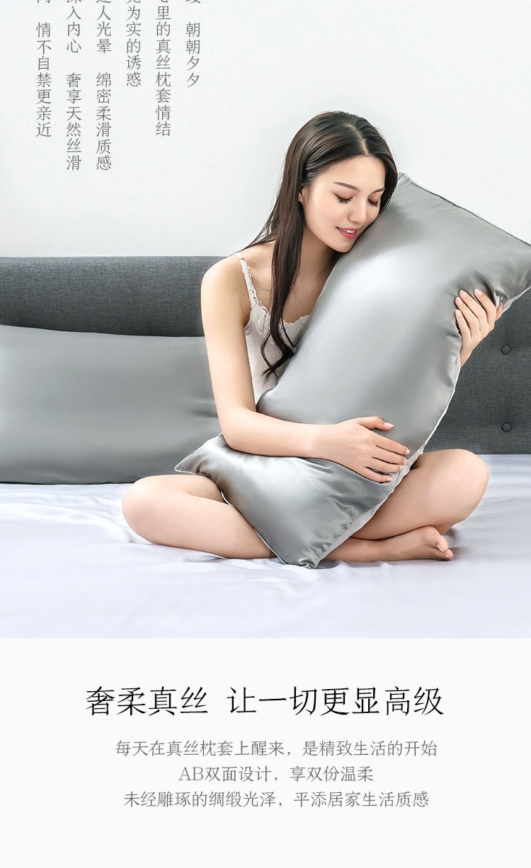 京东京造 真丝枕套 桑蚕丝绸纯色枕头套 单只 48*74cm 灰色